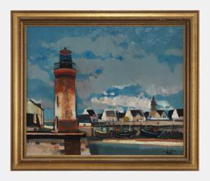 Le phare de Guilvinec, huile sur toile, signée, 54x65 cm