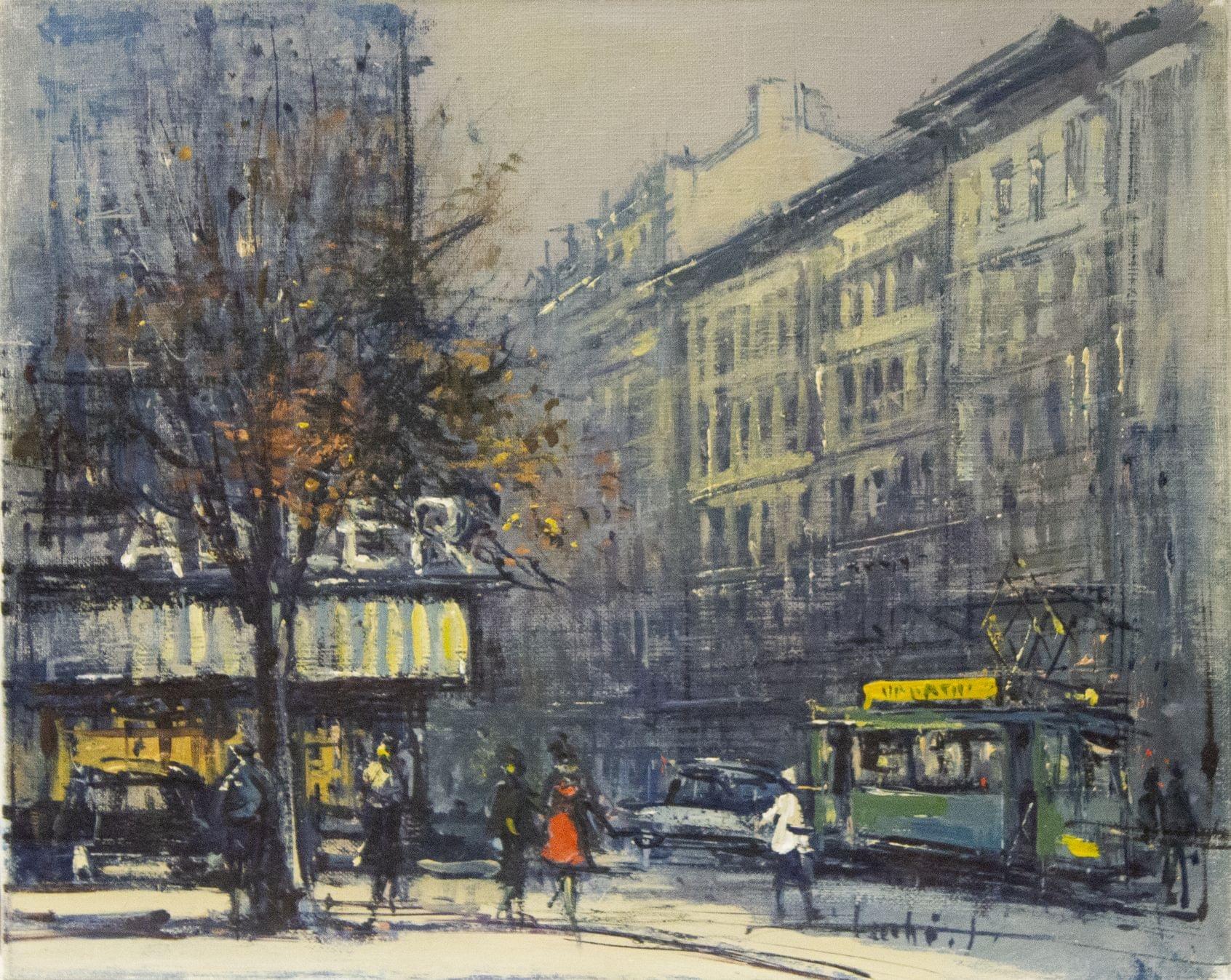 Vue des rues basses à Genève, huile sur toile, signée, 33x41 cm