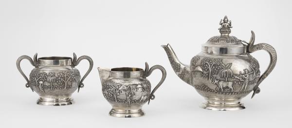 Calcutta, Dass & Dutt, argent, comprenant: théière, sucrier et p...