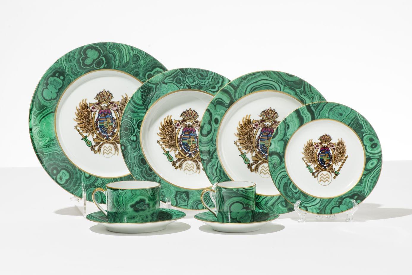 536. Service à bordure imitant la malachite et décor central de grandes armoiries impériales, modèle "Juste-Mauve"