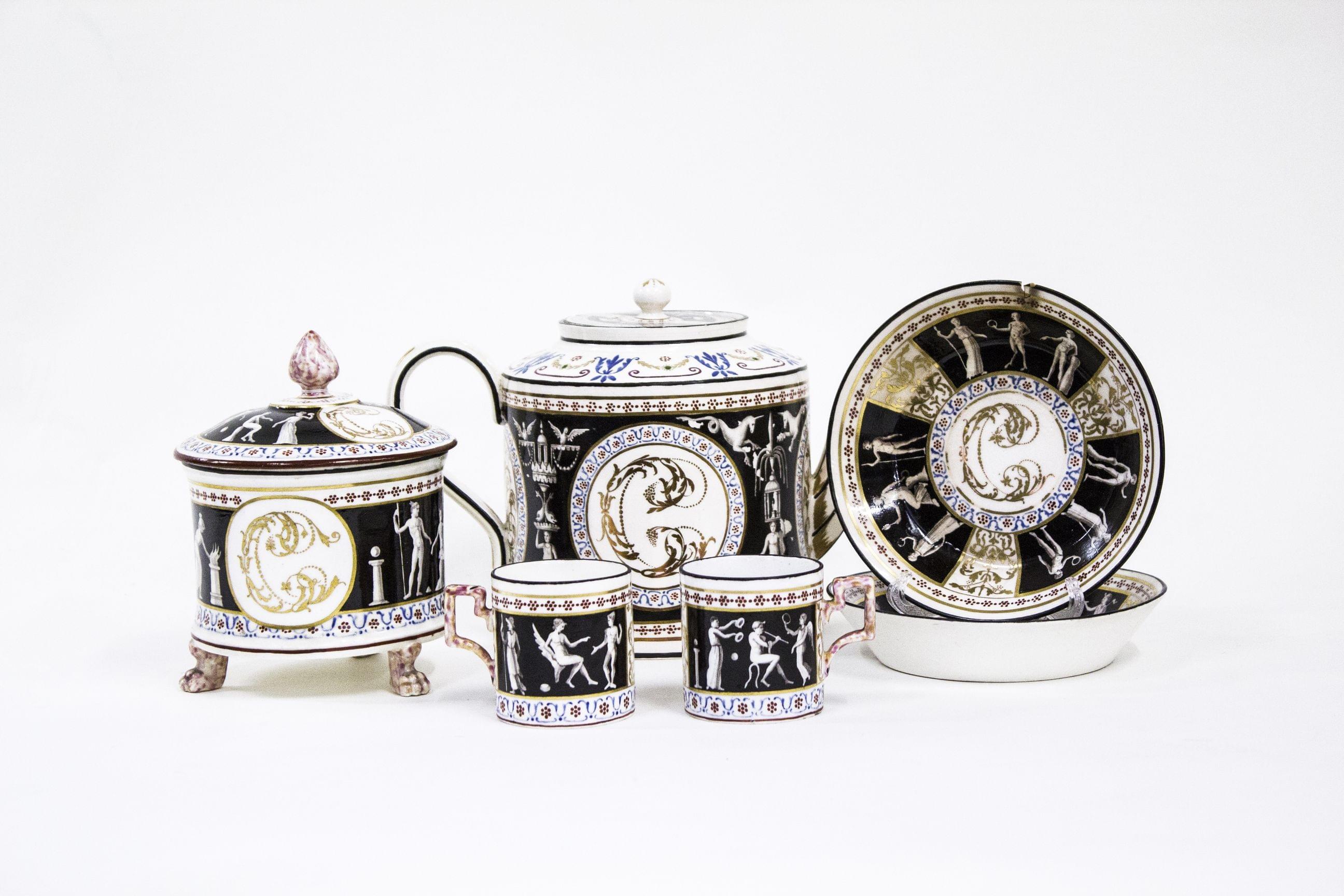 Nyon, porcelaine, comprenant: théière, tasse, sucrier, crémier e...