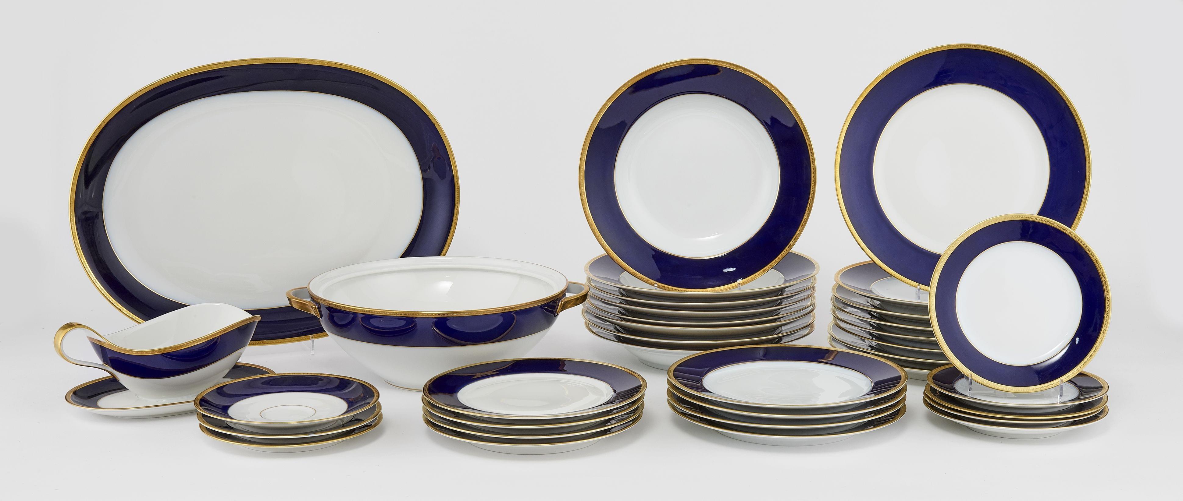 Heinrich, Bavaria, comprenant: 12 assiettes à dîner, 12 creuses, 12 à pain, 6 à entremets, 6 à dessert, 6 tasses à bouillon et 9 pièces de service (63p)
