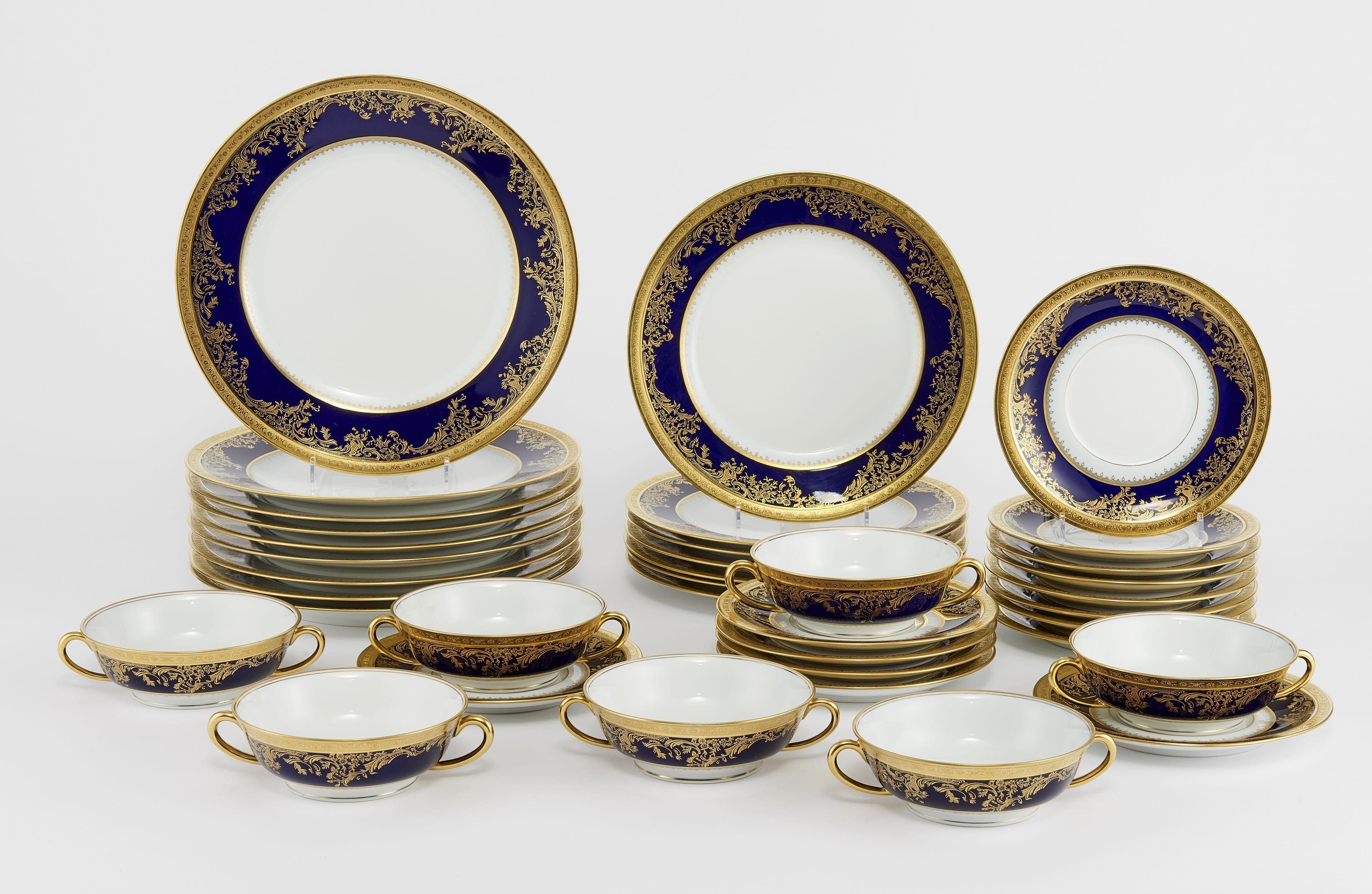 Iran, verre bleu émaillé et doré, comprenant théière, cafetière,...