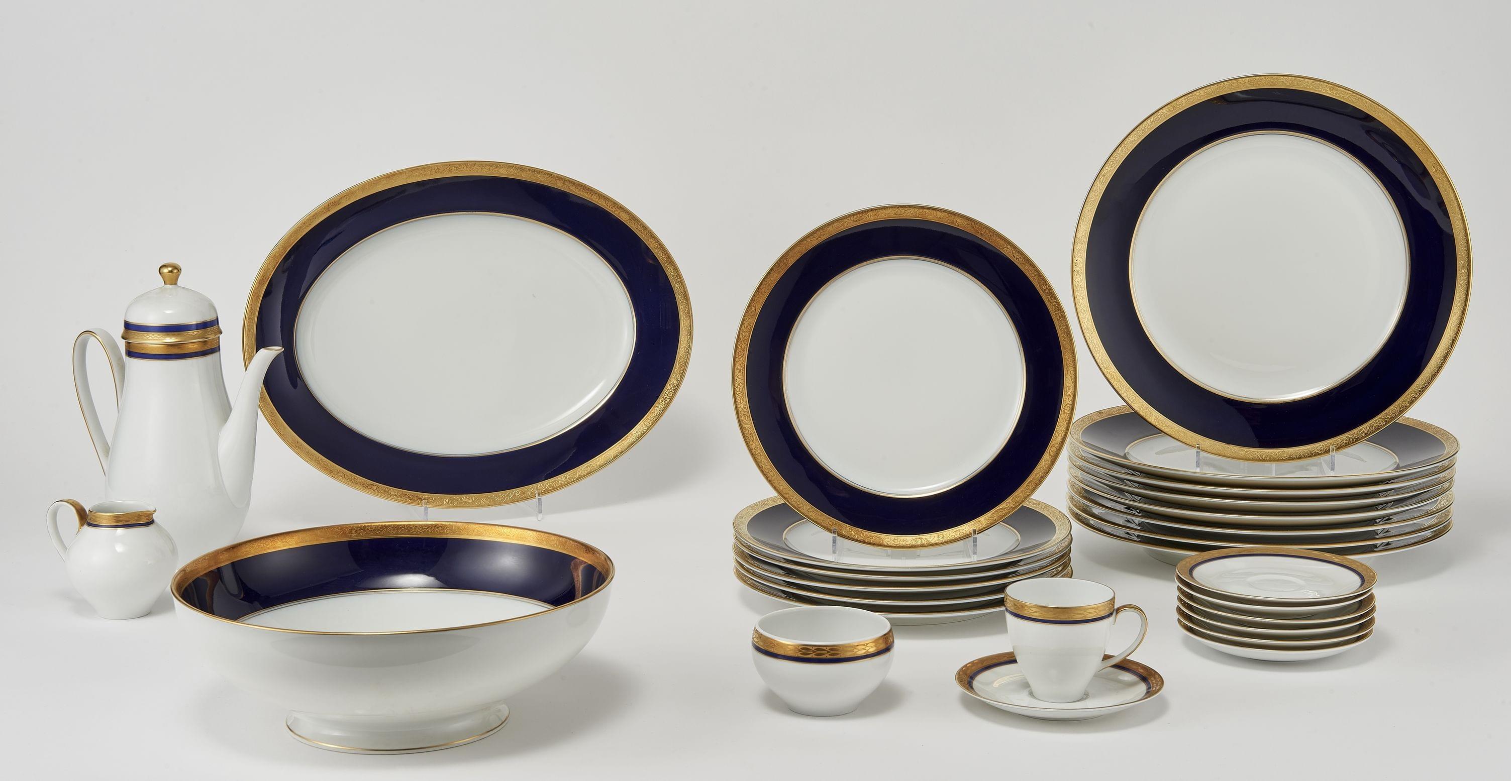 860. Service à dîner à marli bleu nuit et or