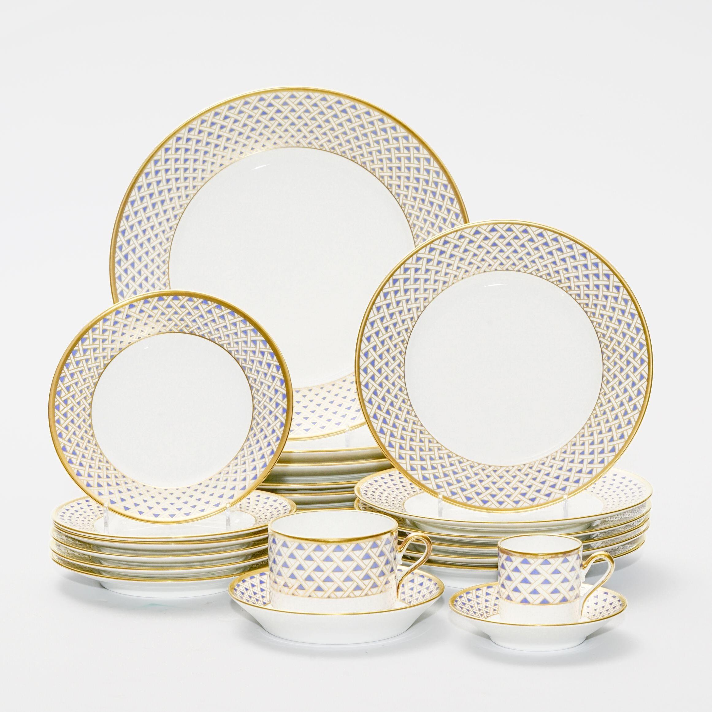 521. Service à dîner monogrammé à filet bleu nuit et or