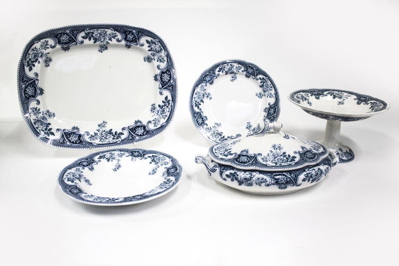 3235. Service à dîner décor blanc bleu de fleurs et rocailles