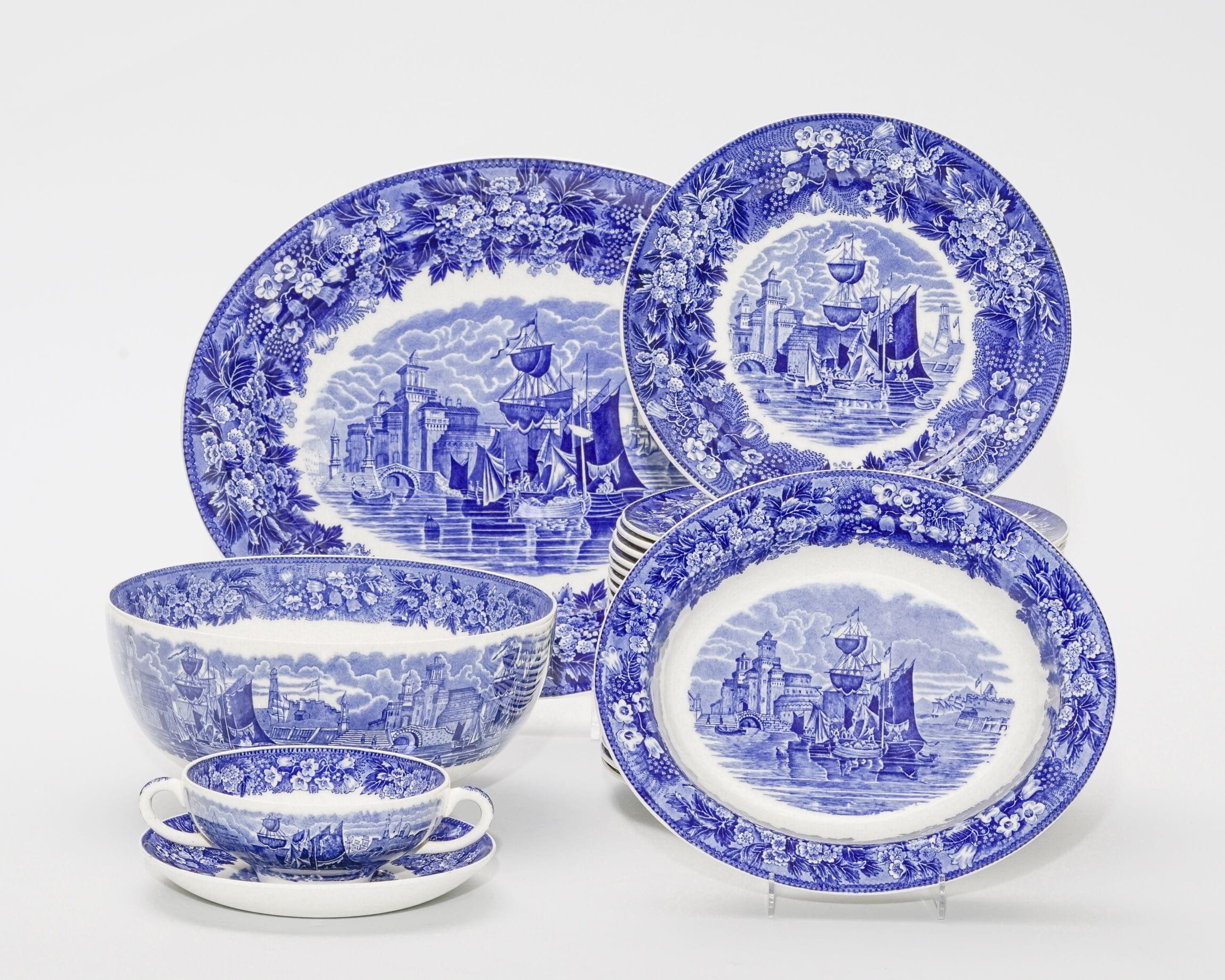 521. Service à dîner monogrammé à filet bleu nuit et or