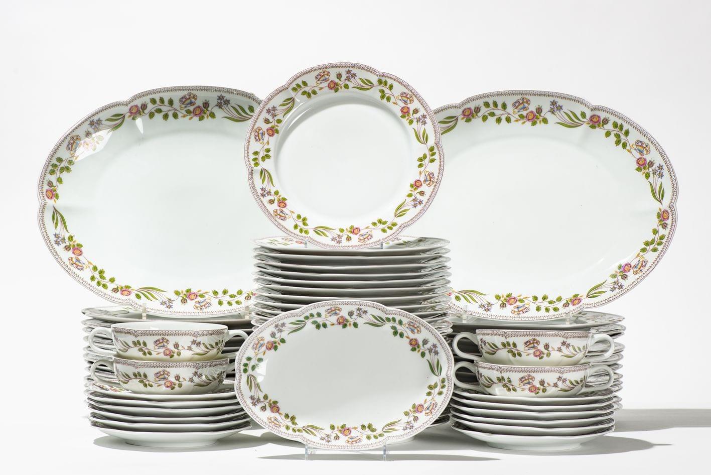 382. Service à dîner, modèle Ségur, à décor de fleurs et papillons,
