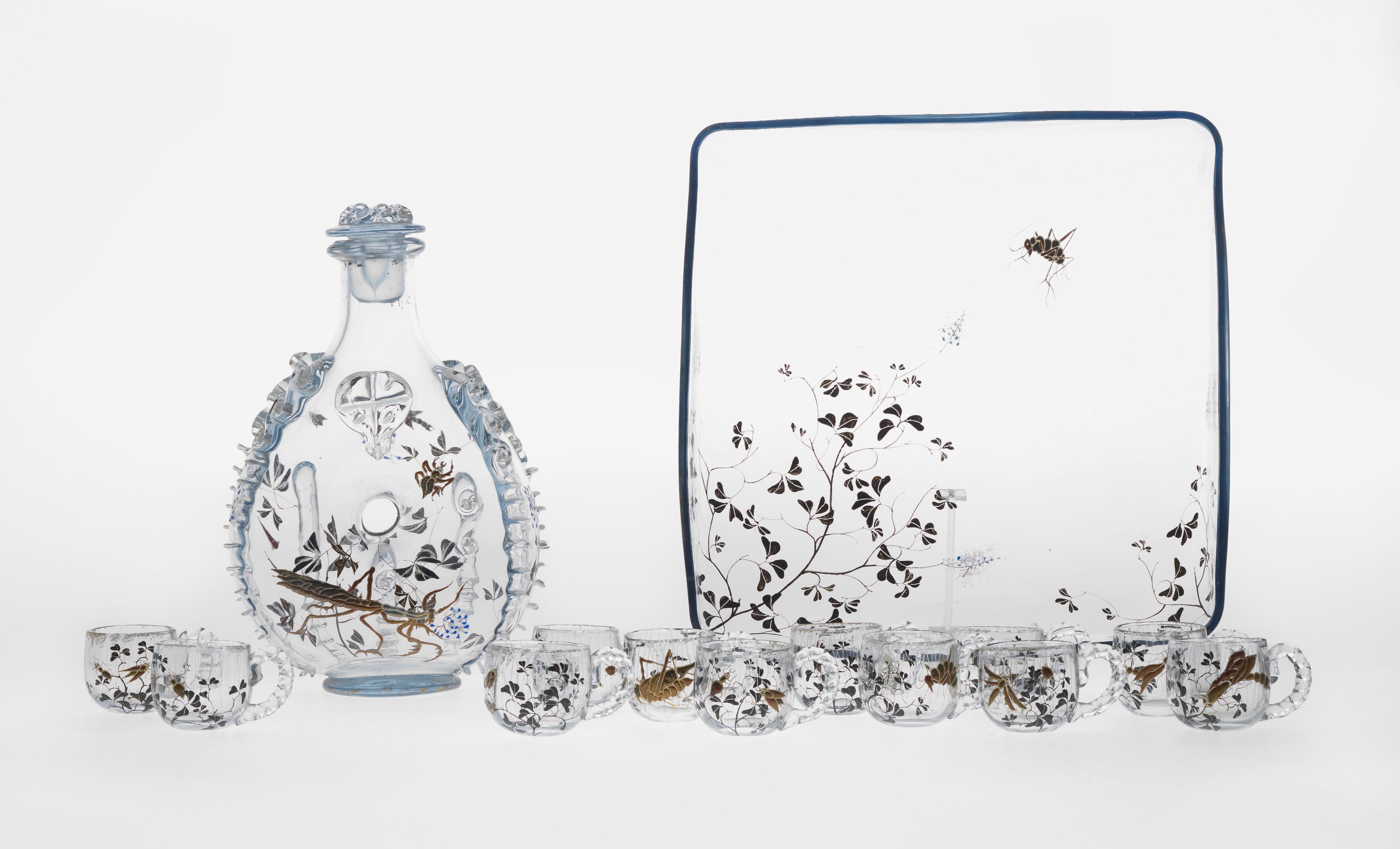 5140. Service à liqueur signé E. Gallé à Nancy comprenant une carafe, douze tasses et un plateau