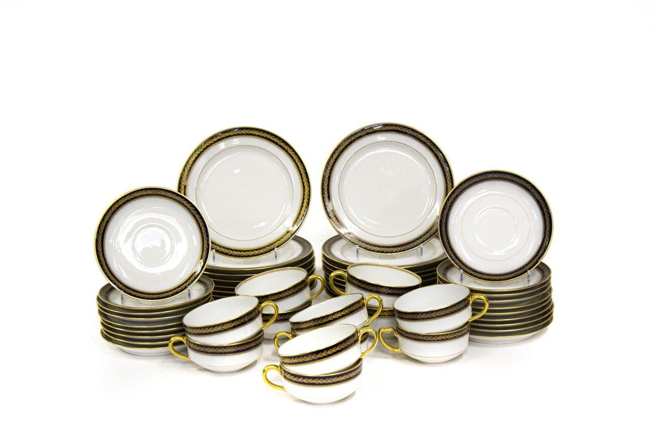 834. Service à thé à décor blanc bleu de rameaux fleuris