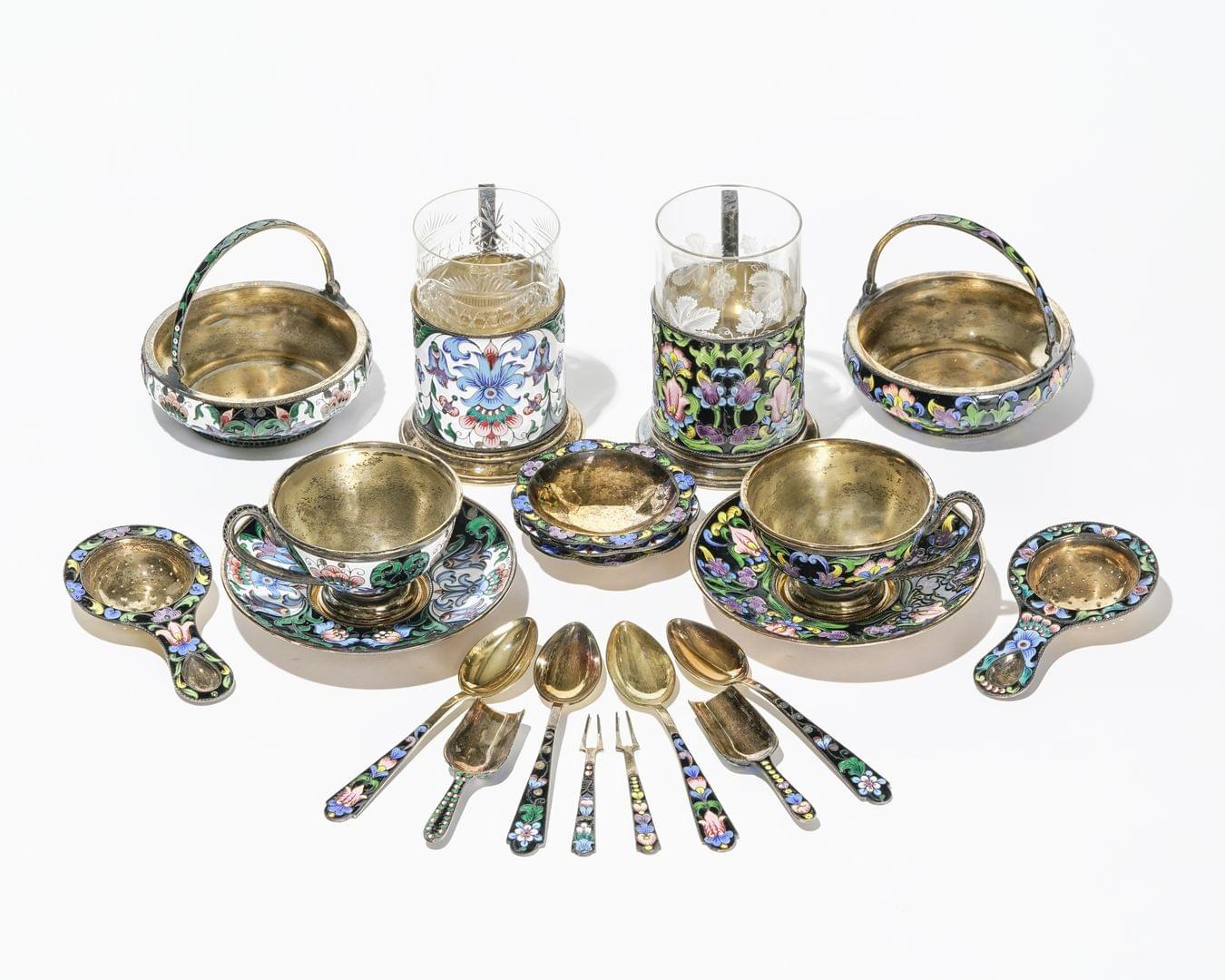 Cuivre et émaux à décor en réserve de motifs floraux sur fond pa...