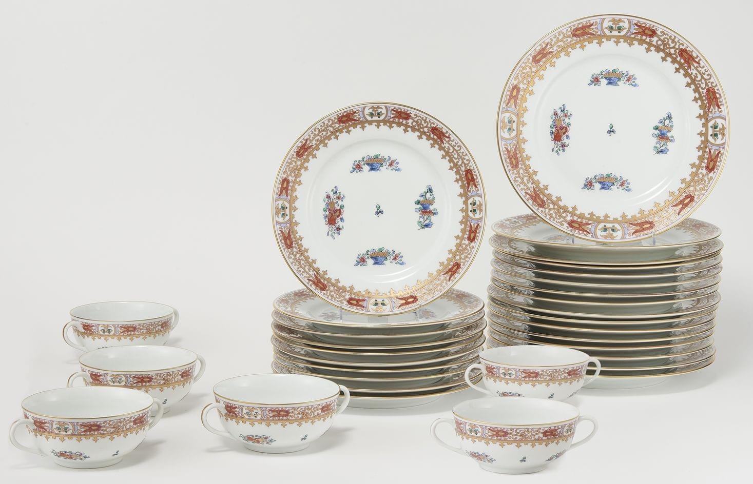 Limoges, Raynaud, porcelaine comprenant 16 assiettes à dîner, 10 assiettes à dessert