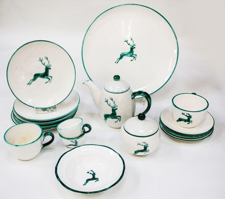 Autriche, Gmundner, céramique, comprenant: 12 assiettes, 6 tasses à thé, 12 à café, 2 sucriers, 1 cafetière, 1 théière, 1 crémier et 2 plats (37p)