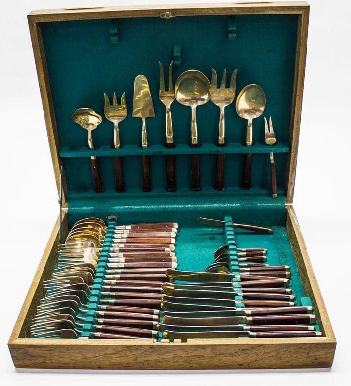 380. Service à dîner à bordure dorée mat et brillant d'agrafes et fle...