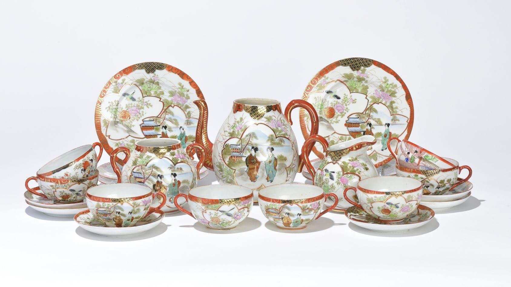 Porcelaine, Japon, comprenant: 6 tasses et 6 assiettes