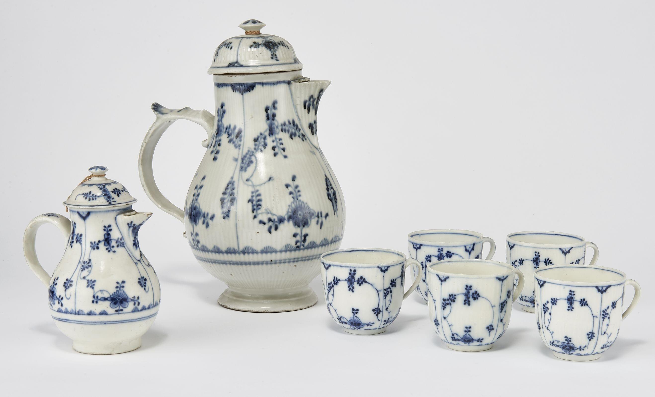 Zurich, porcelaine, XVIIIe s, comprenant: une verseuse, un crémier et cinq tasses (7p)