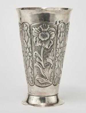 833. Vase cornet à décor repoussé de fleurs dans des parecloses