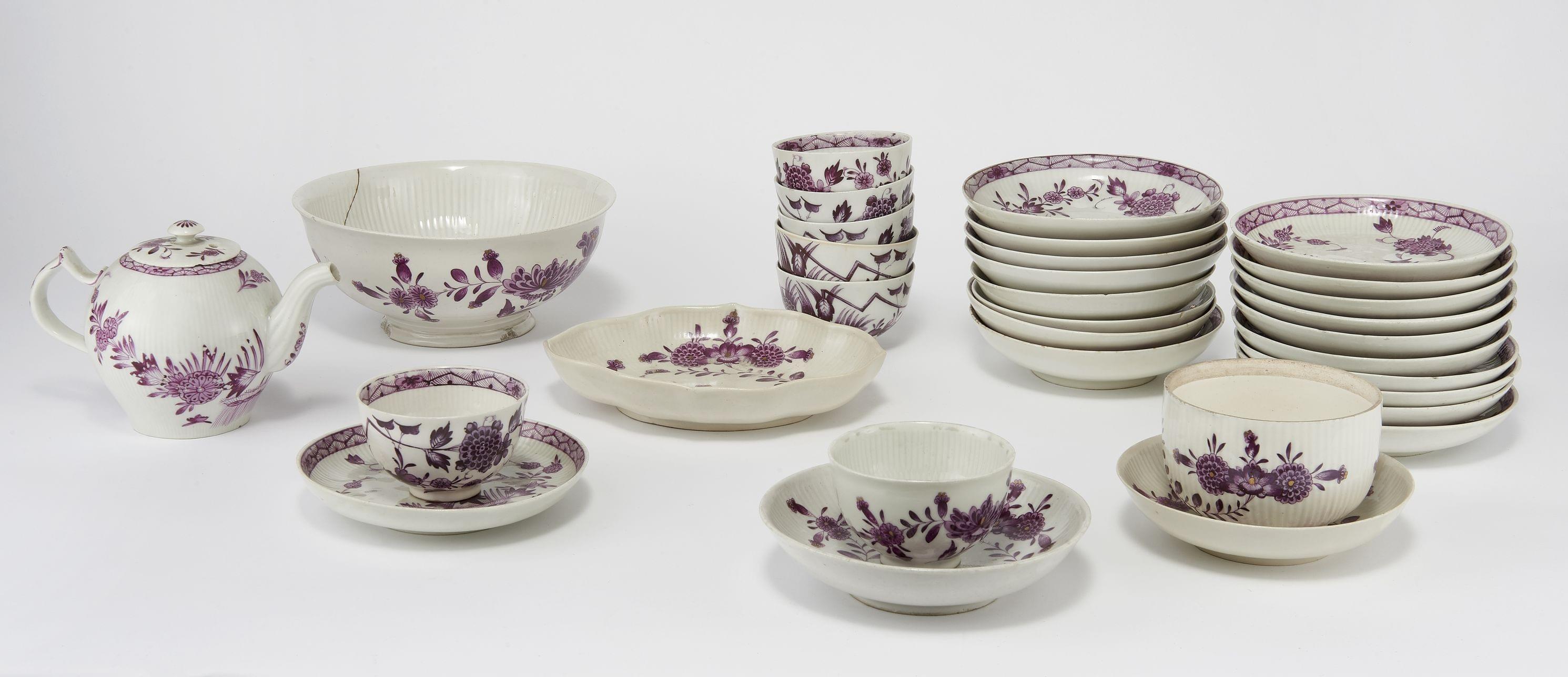 Zurich, porcelaine, XVIIIe s, comprenant: une théière, un ravier et six bols (8p)