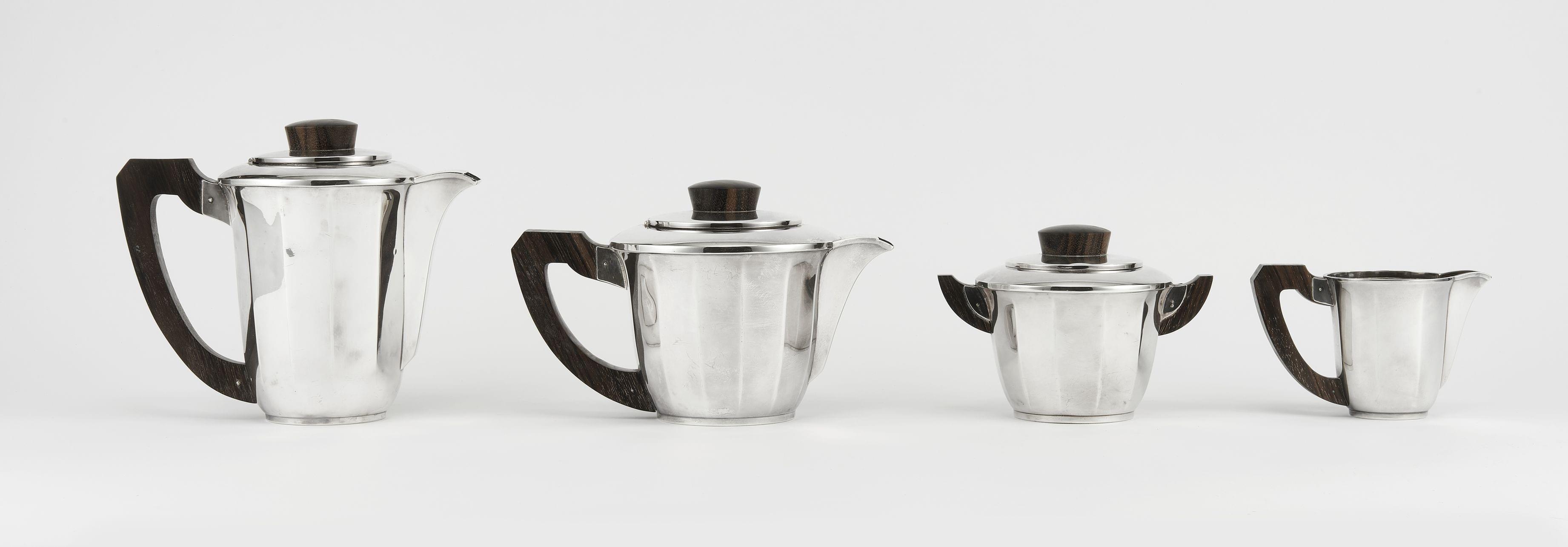 367. Ensemble d'une théière piriforme festonnée et un plateau de serv...