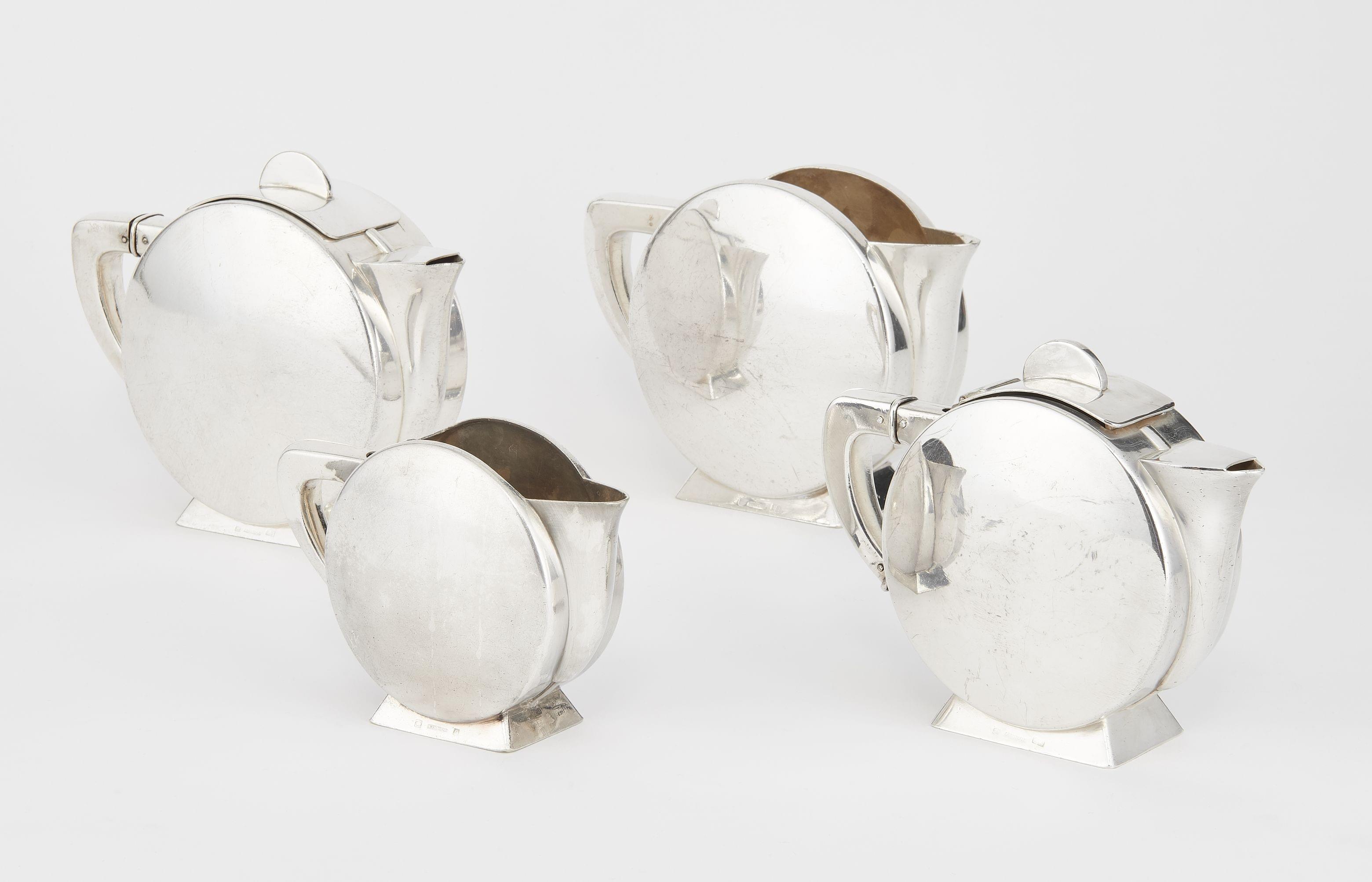 Christofle, Christian Fjerdingstad (1891-1968), métal argenté: comprenant; grande théière, petite théière, verseuse, pot à lait, H 15 cm