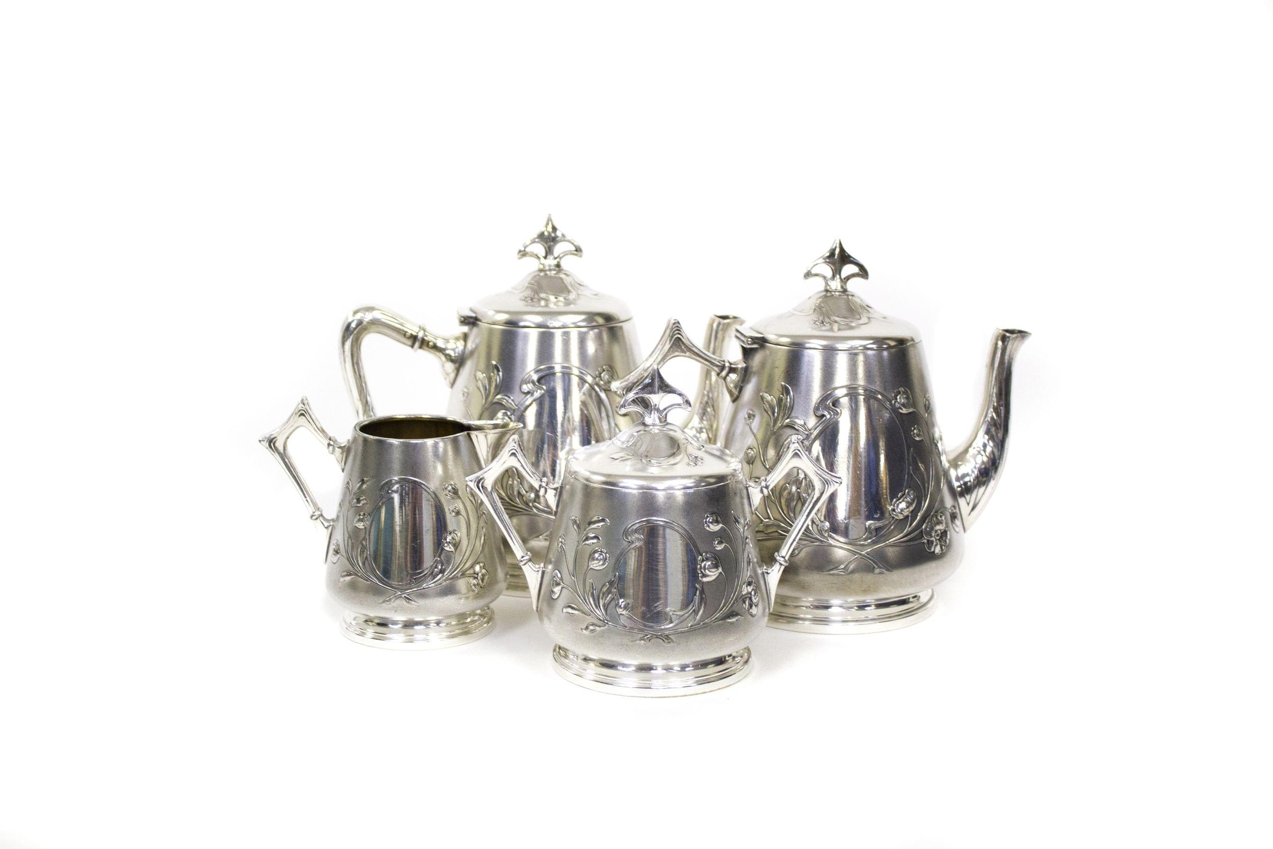 367. Ensemble d'une théière piriforme festonnée et un plateau de serv...