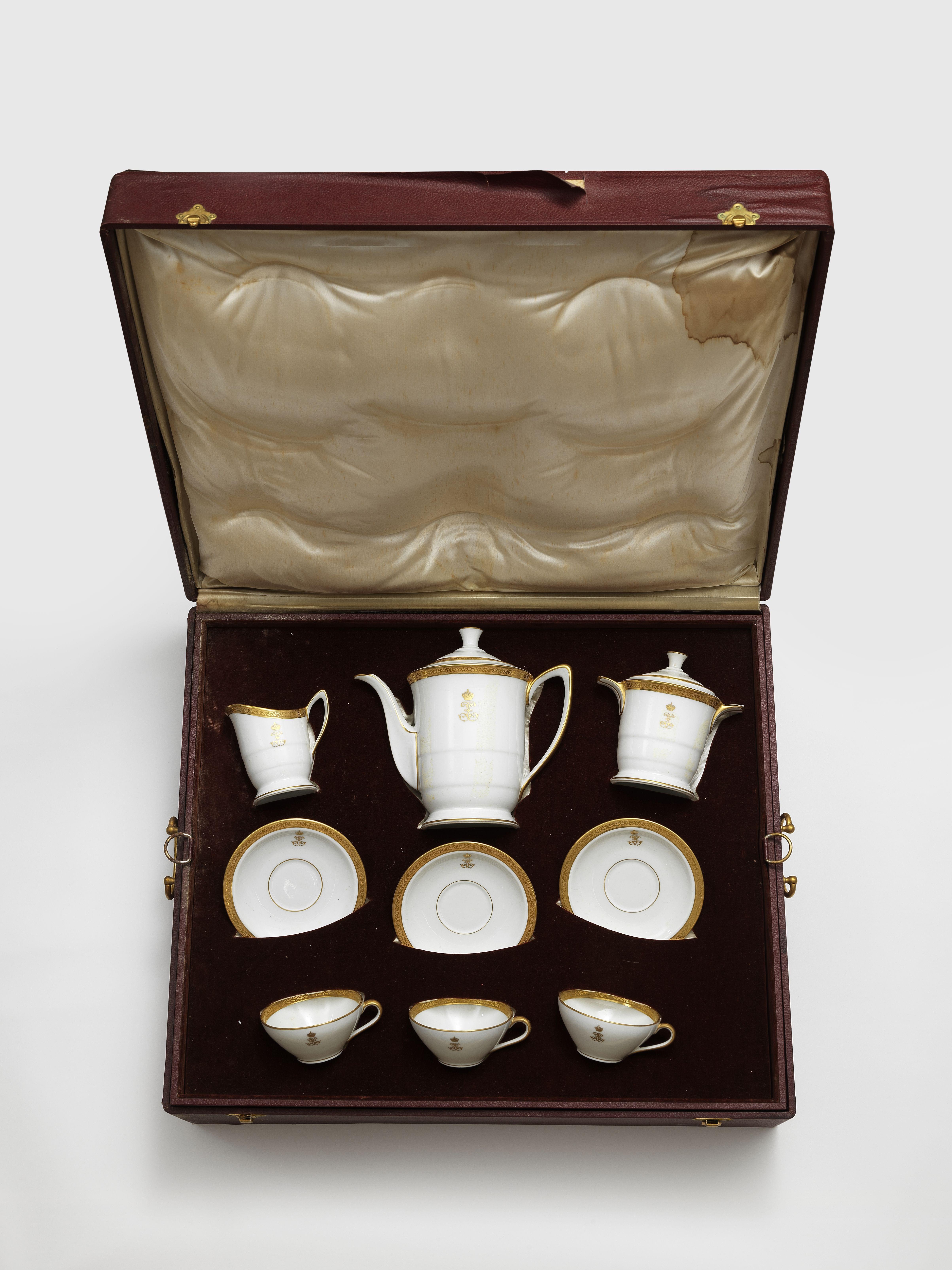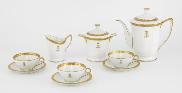 8. Service à thé blanc et or au chiffre de la reine Hélène d'Italie