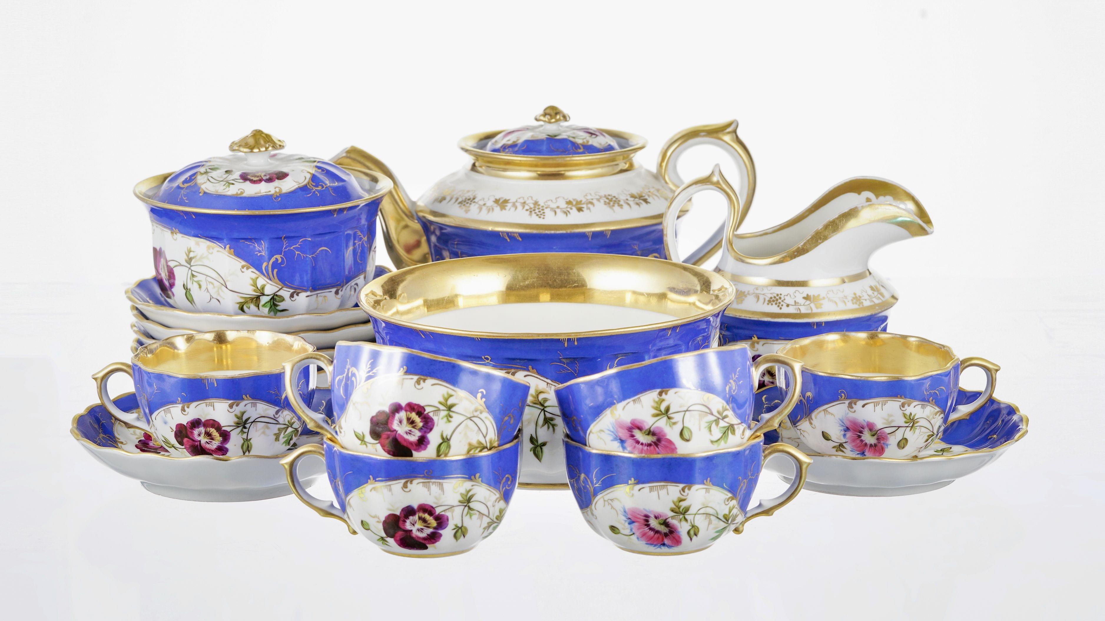 491. Partie de service de voyage Rocaille à décor de paysages animés...