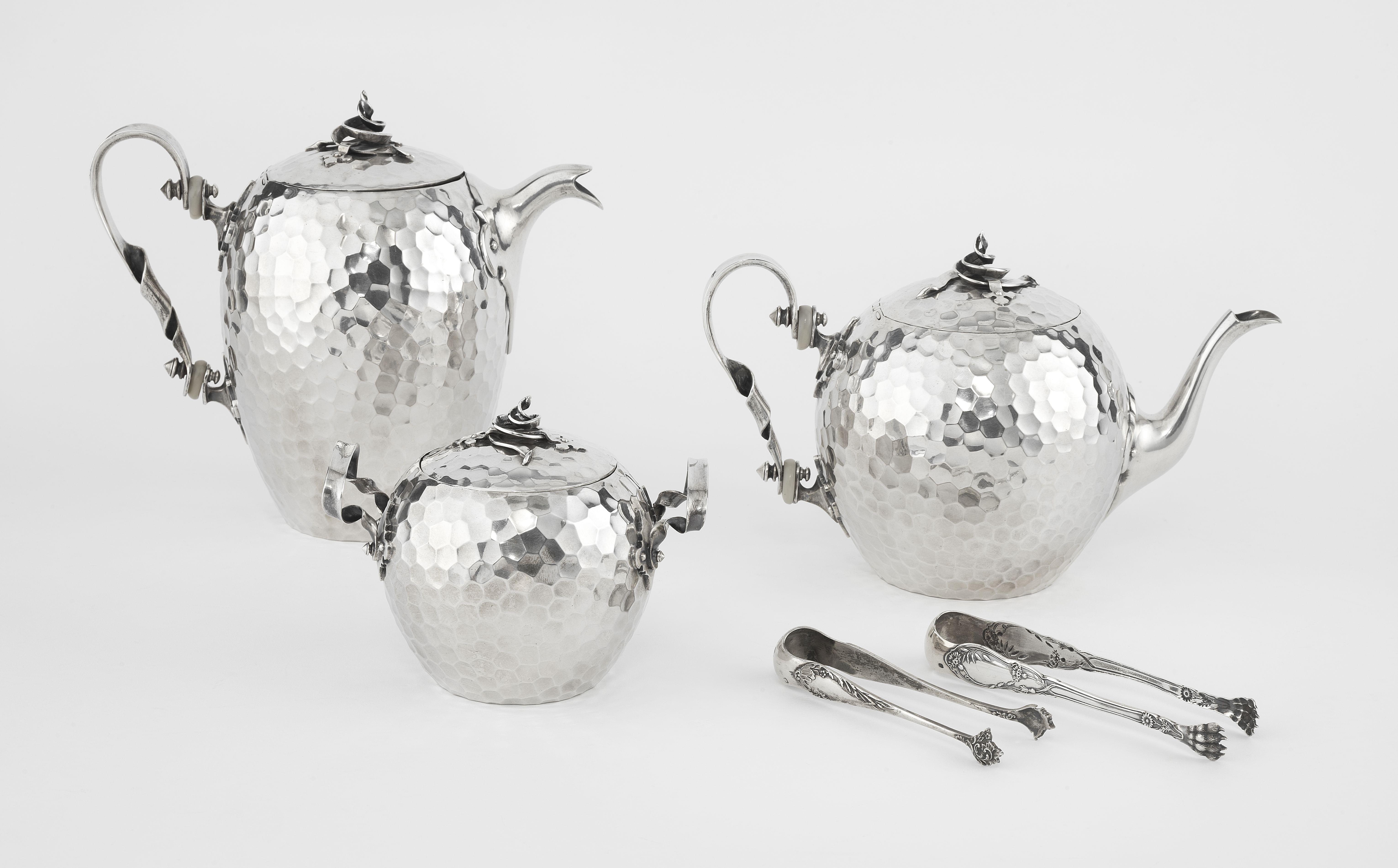 110. Plateau de service Art déco martelé à motif en pétales stylisés