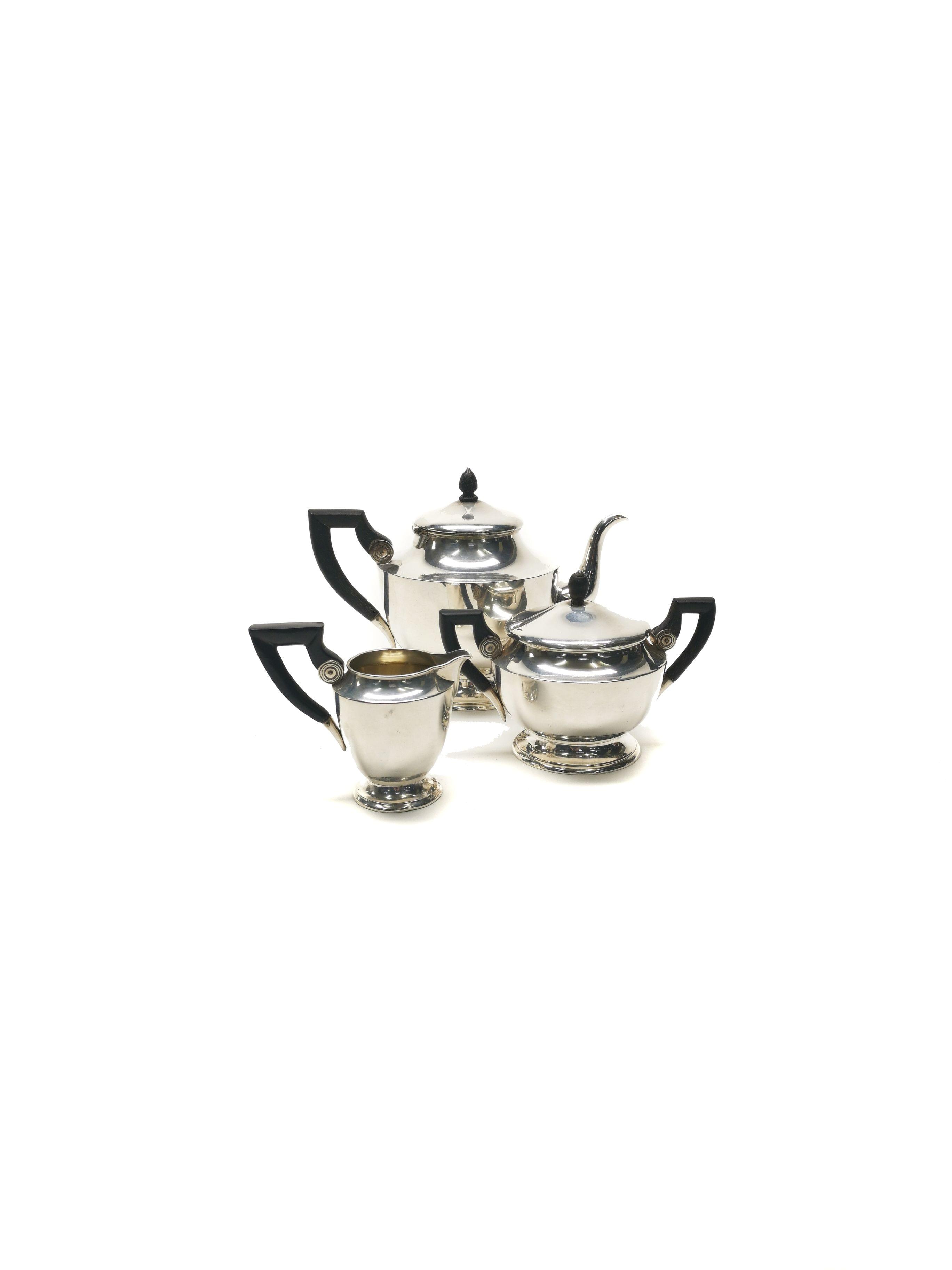 Argent, comprenant; une théiere, un sucrier, un crémier, H de 10 à 17 cm, poids brut 920 g