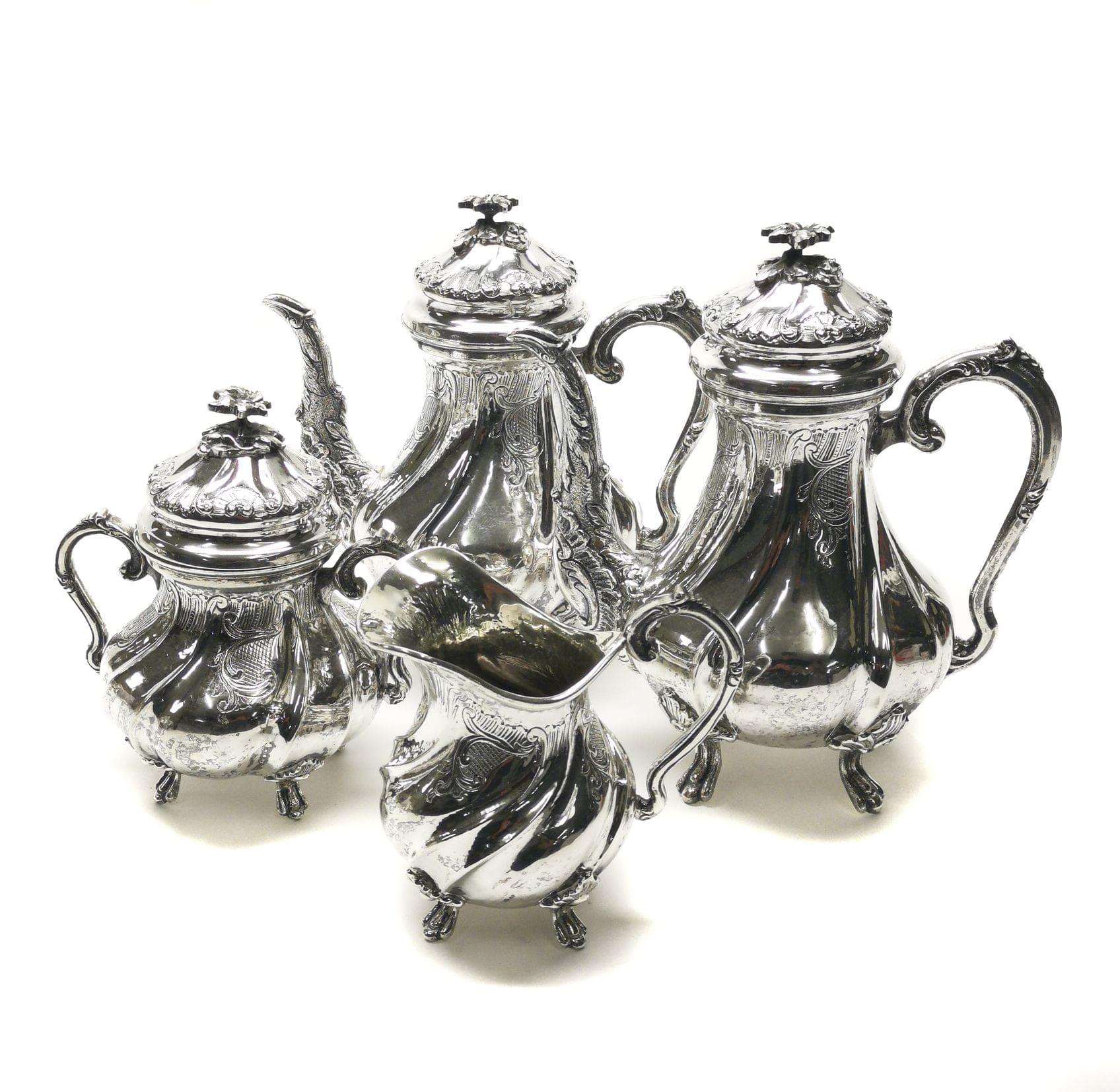 Argent 900, comprenant: quatre pièces: théière, cafetière,sucrier et pot à lait, 3100 g