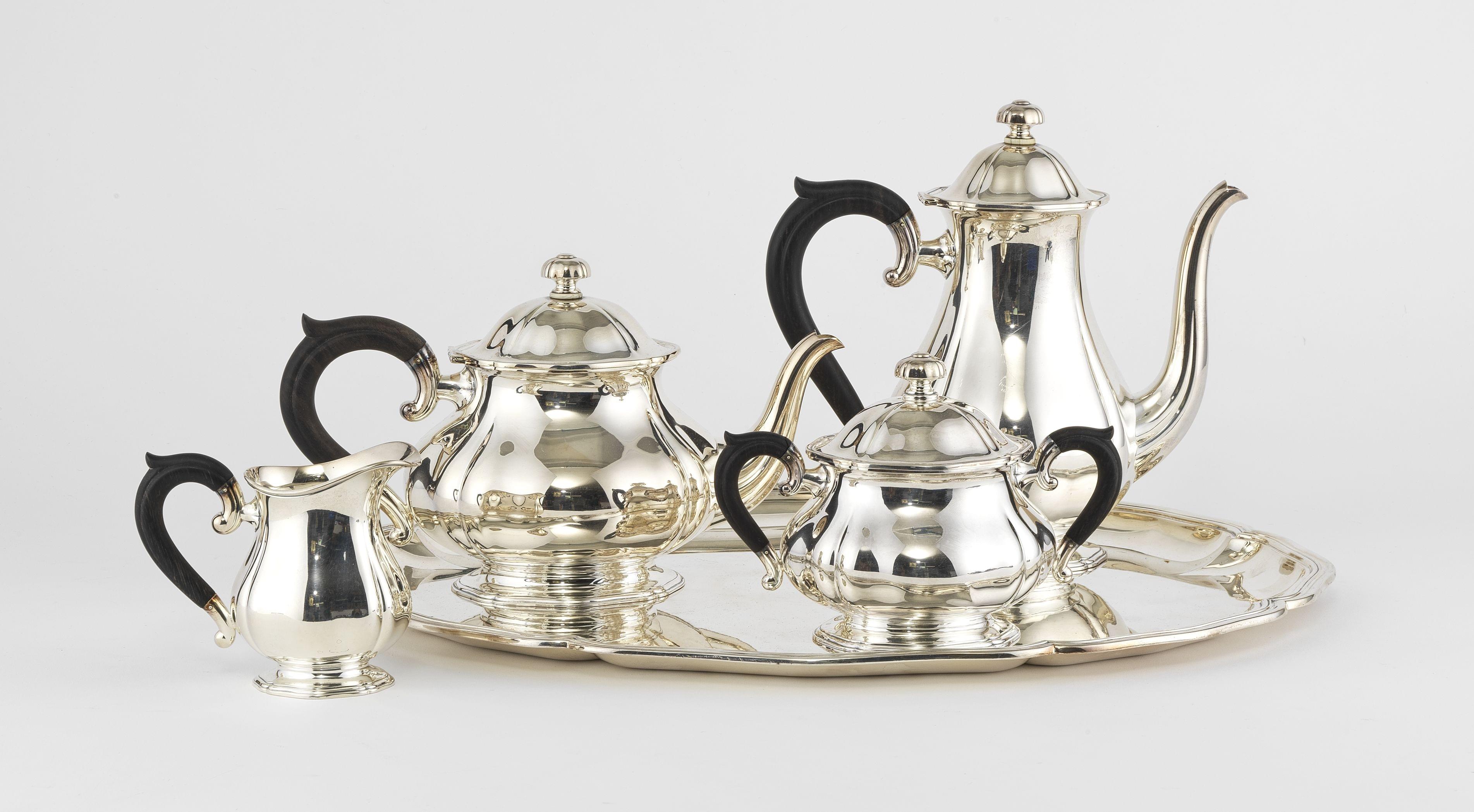 Argent, comprenant: Samovar, théière, cafetière, verseuse, crémi...