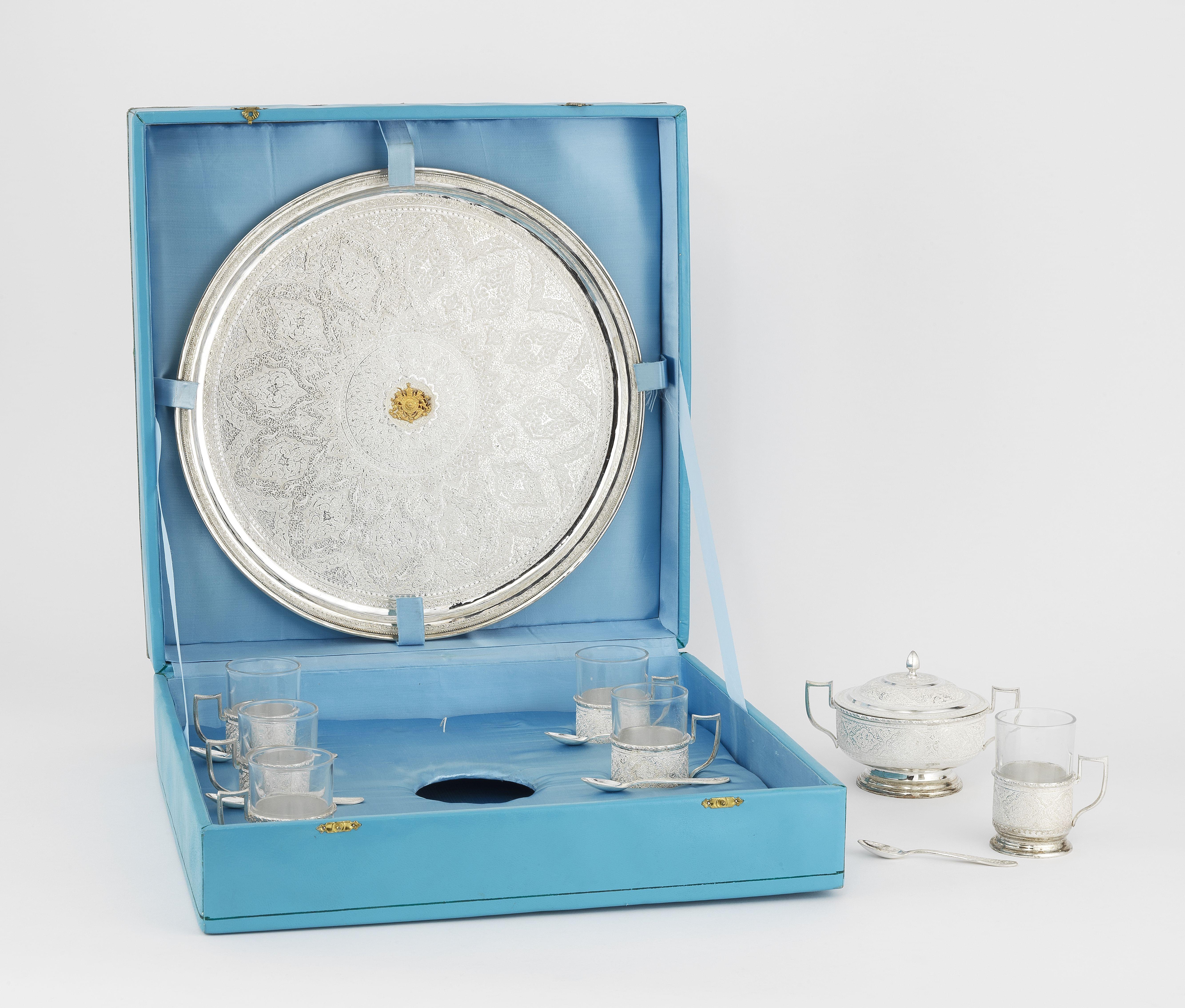 13. Service à thé gravé d'arabesques armorié Pahlavi