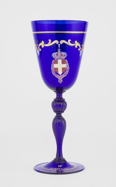 3954. Verre bleu cobalt et armorié, dédicacé, Murano, Seguso
