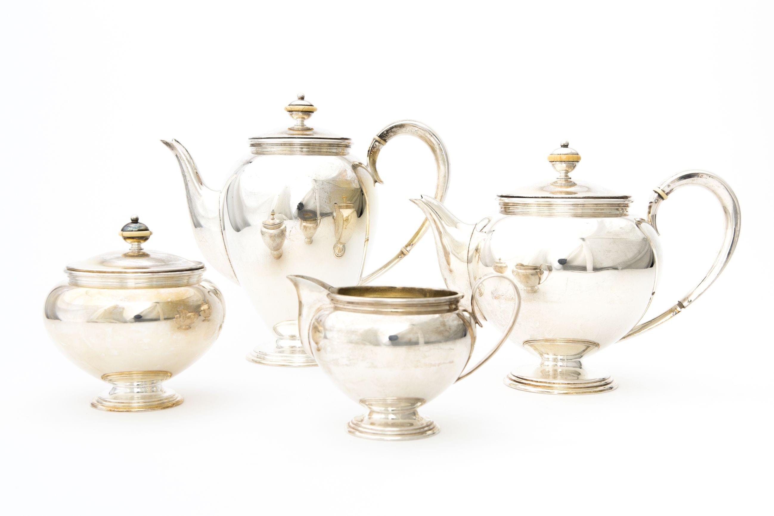 600. Service à thé d'époque George IV à décor repoussé et ciselé de f...