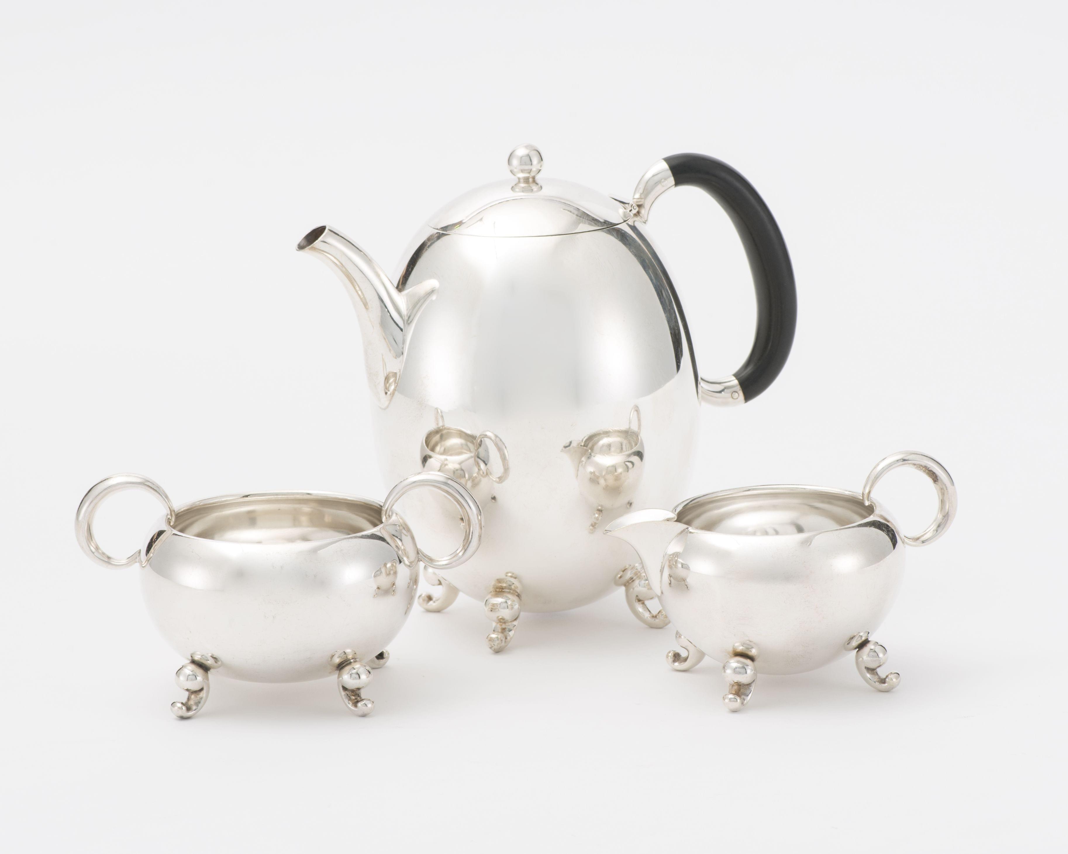 173. Service à thé ovoïde comprenant théière, sucrier et crémier