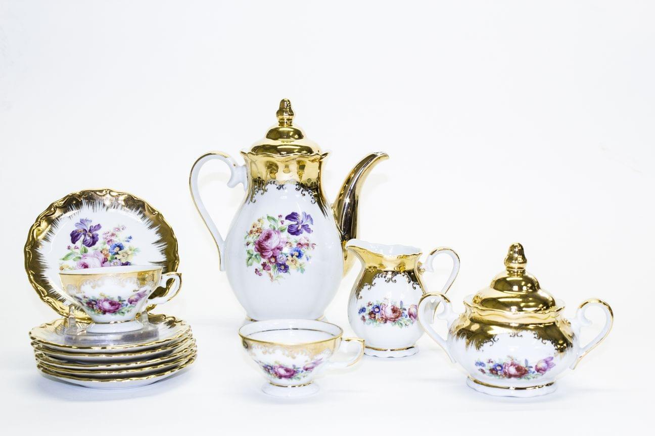 225. Service à thé de style Rocaille blanc et or à bec verseur en all...