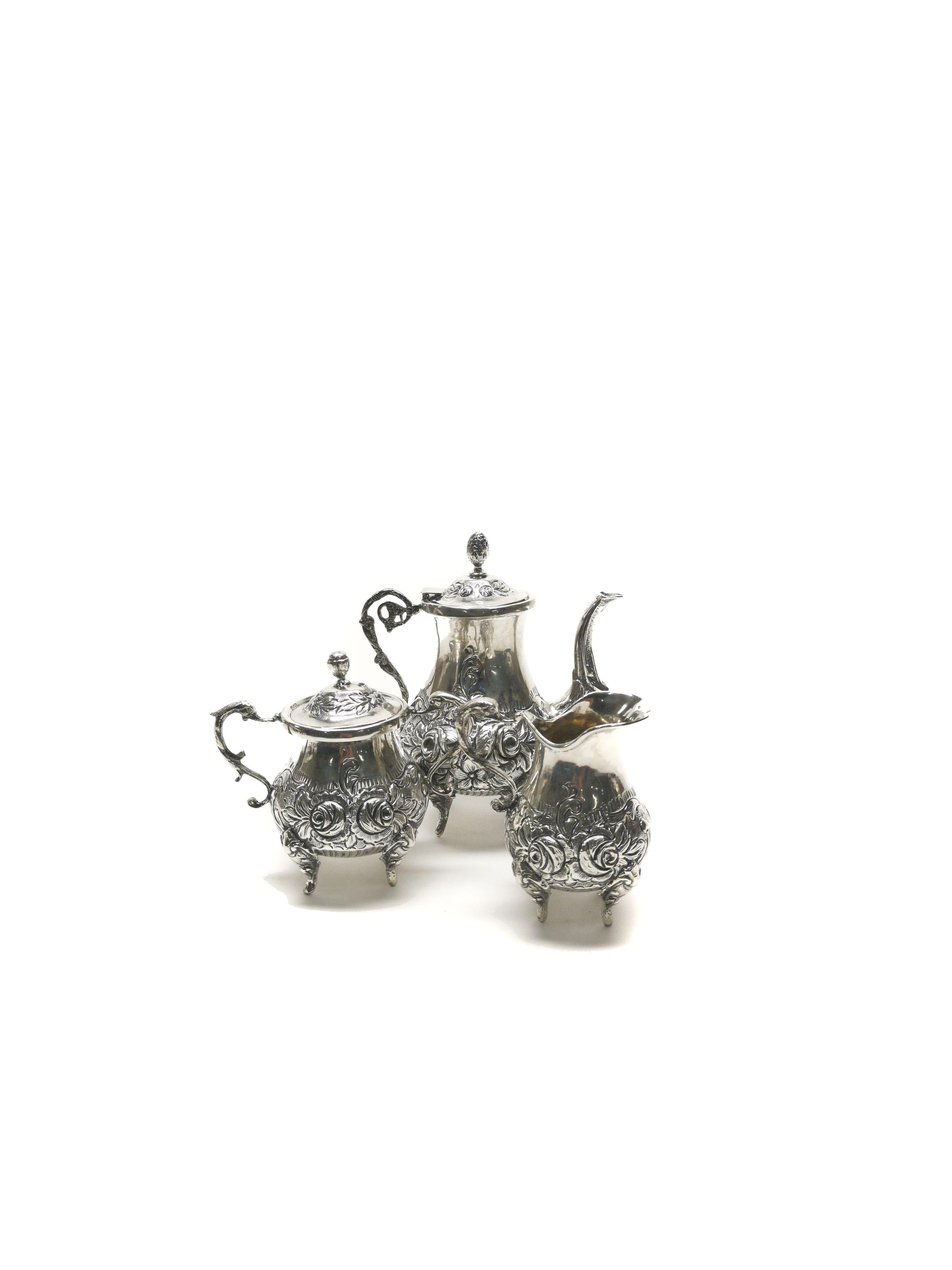 Argent, comprenant: verseuse, sucrier et pot à lait, 670g