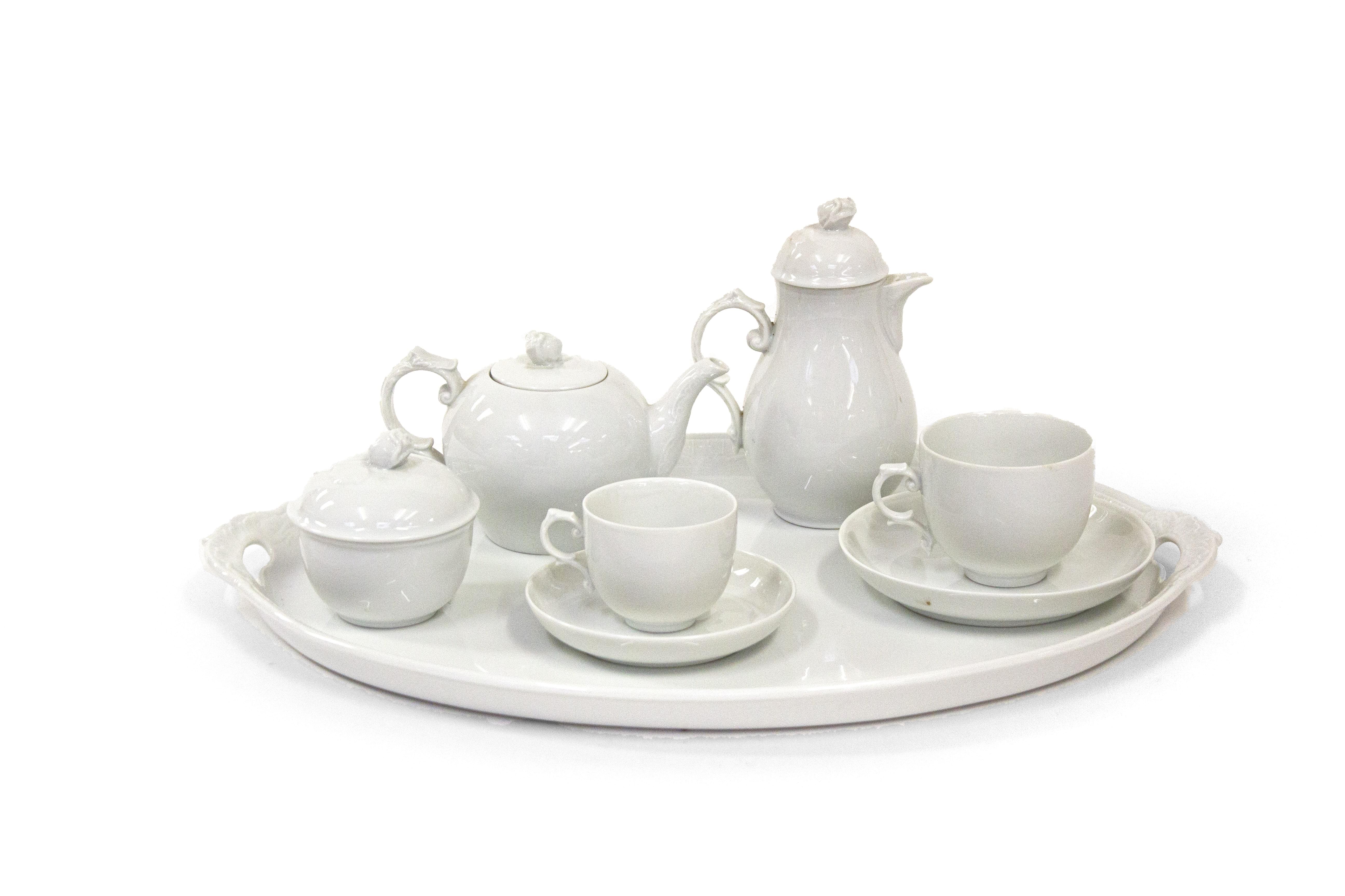 Fürstenberg, porcelaine blanche, comprenant: plateau, théière, cafetière, sucrier, tasse à thé, tasse à café (6p)