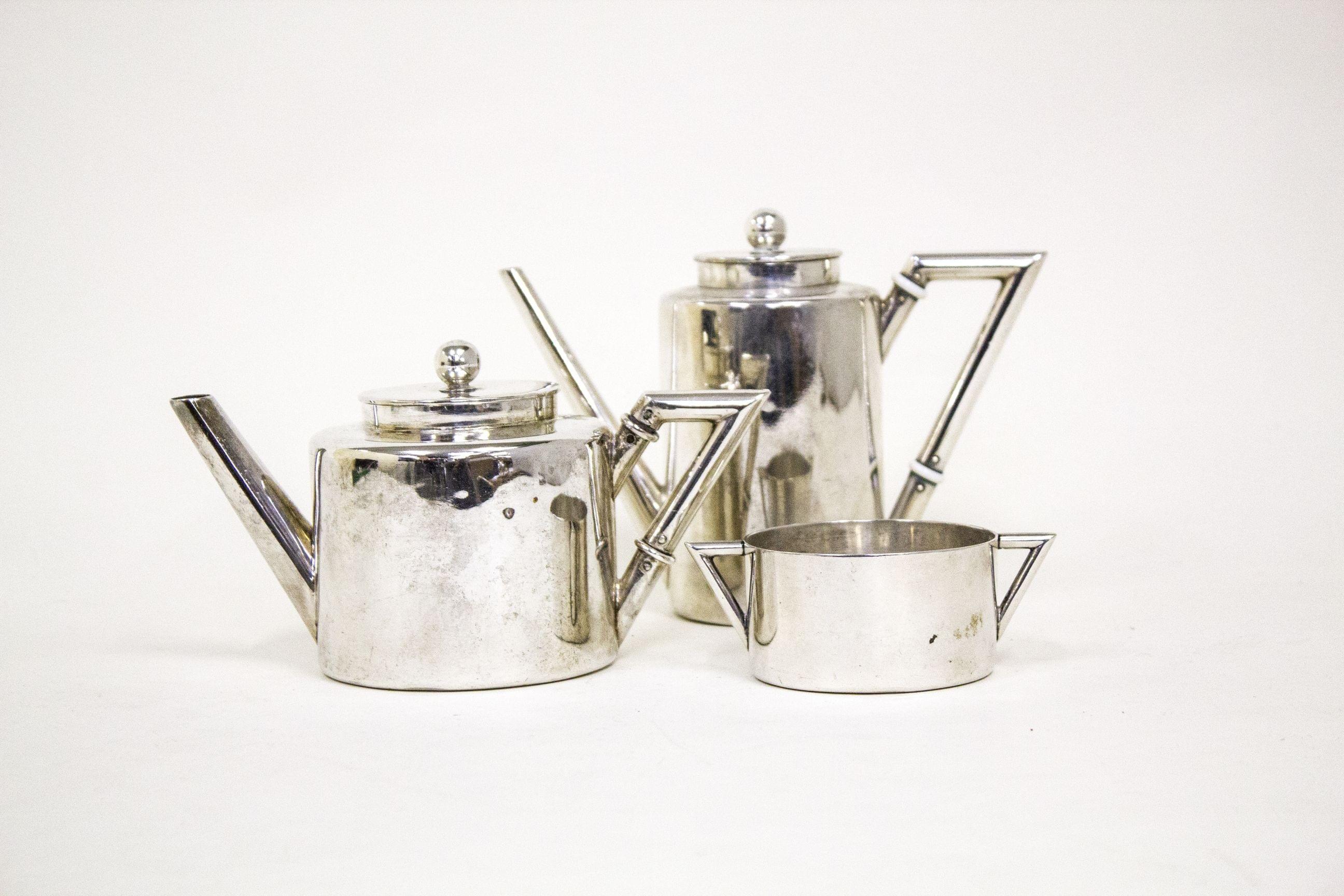 586. Service à thé égoïste à décor de filets bleus et entrelacs de gu...