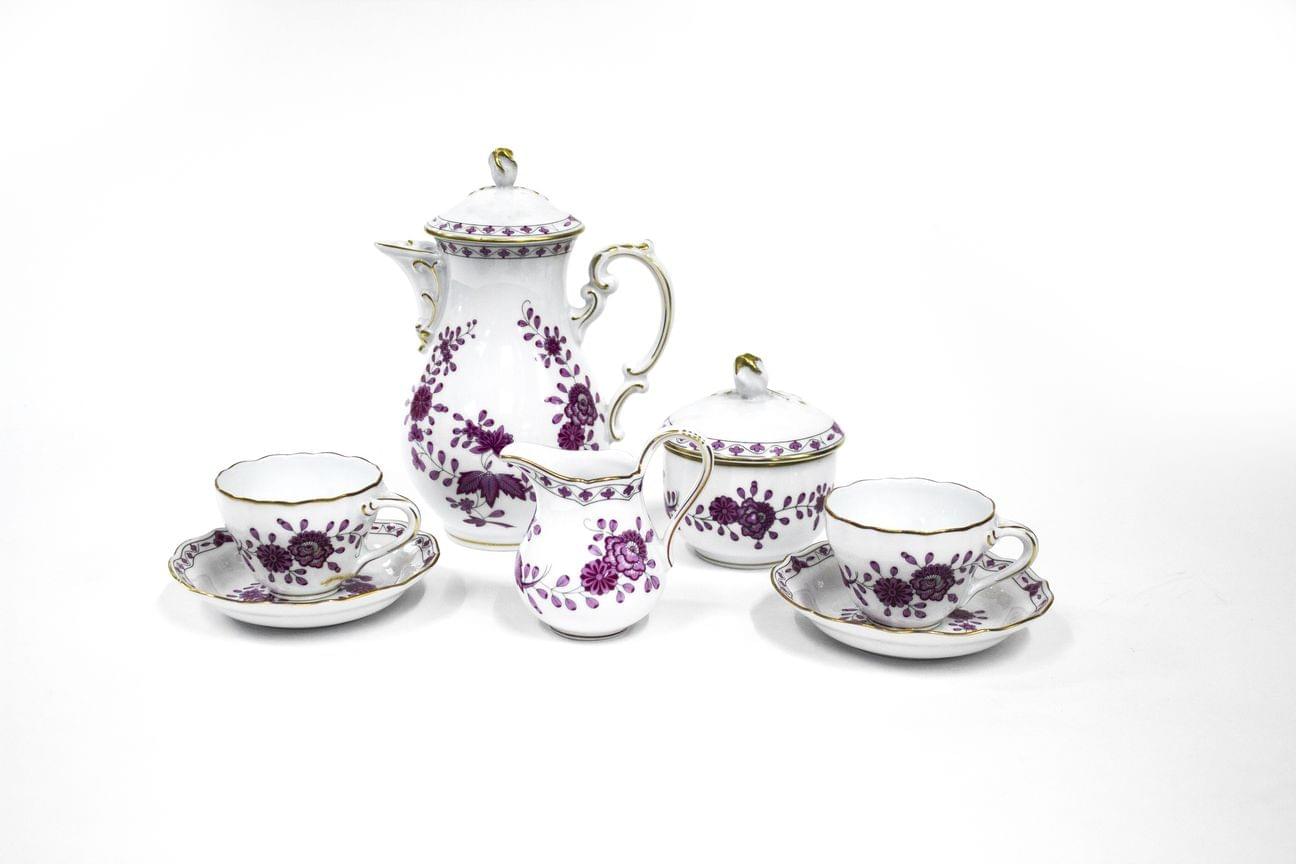 3203. Service tête-à-tête à motif de fleurs pourpres