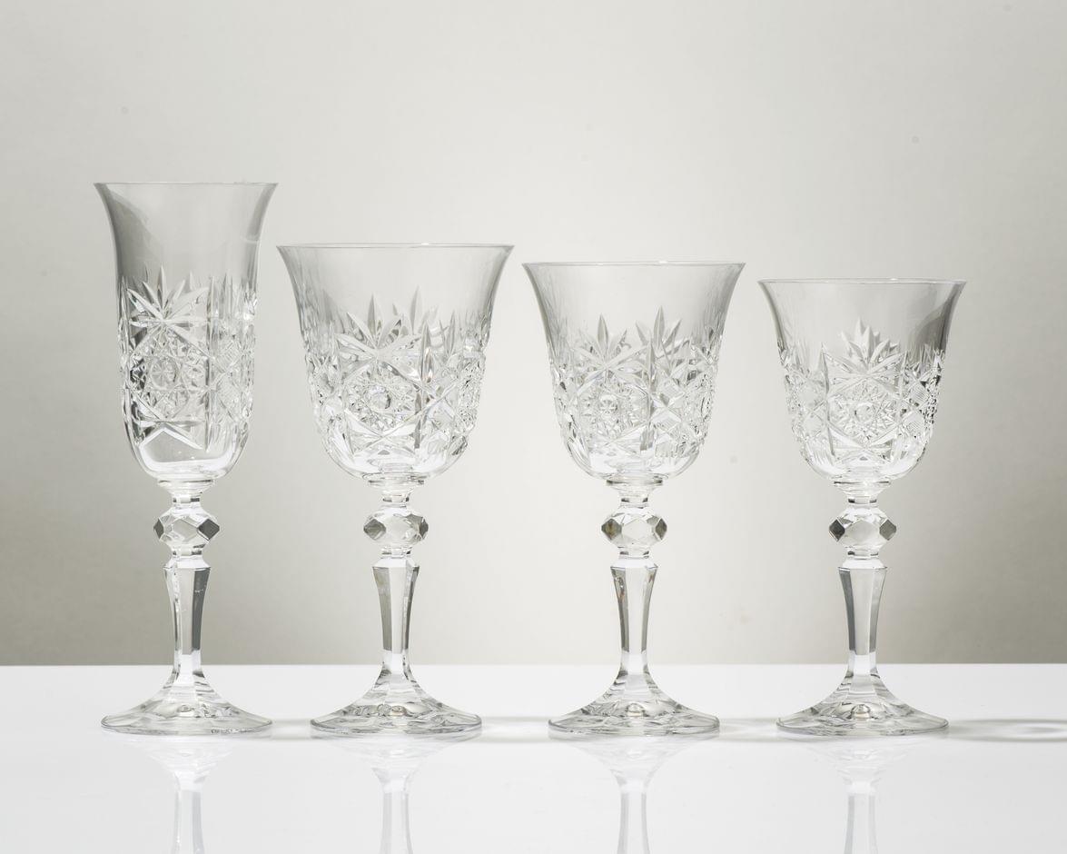 Cristal, comprenant: 8 verres à eau, 6 verres à vin rouge, 10 ve...