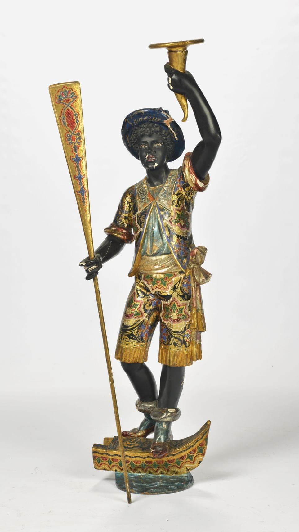 Bois sculpté polychrome et or, Venise, H 118 cm