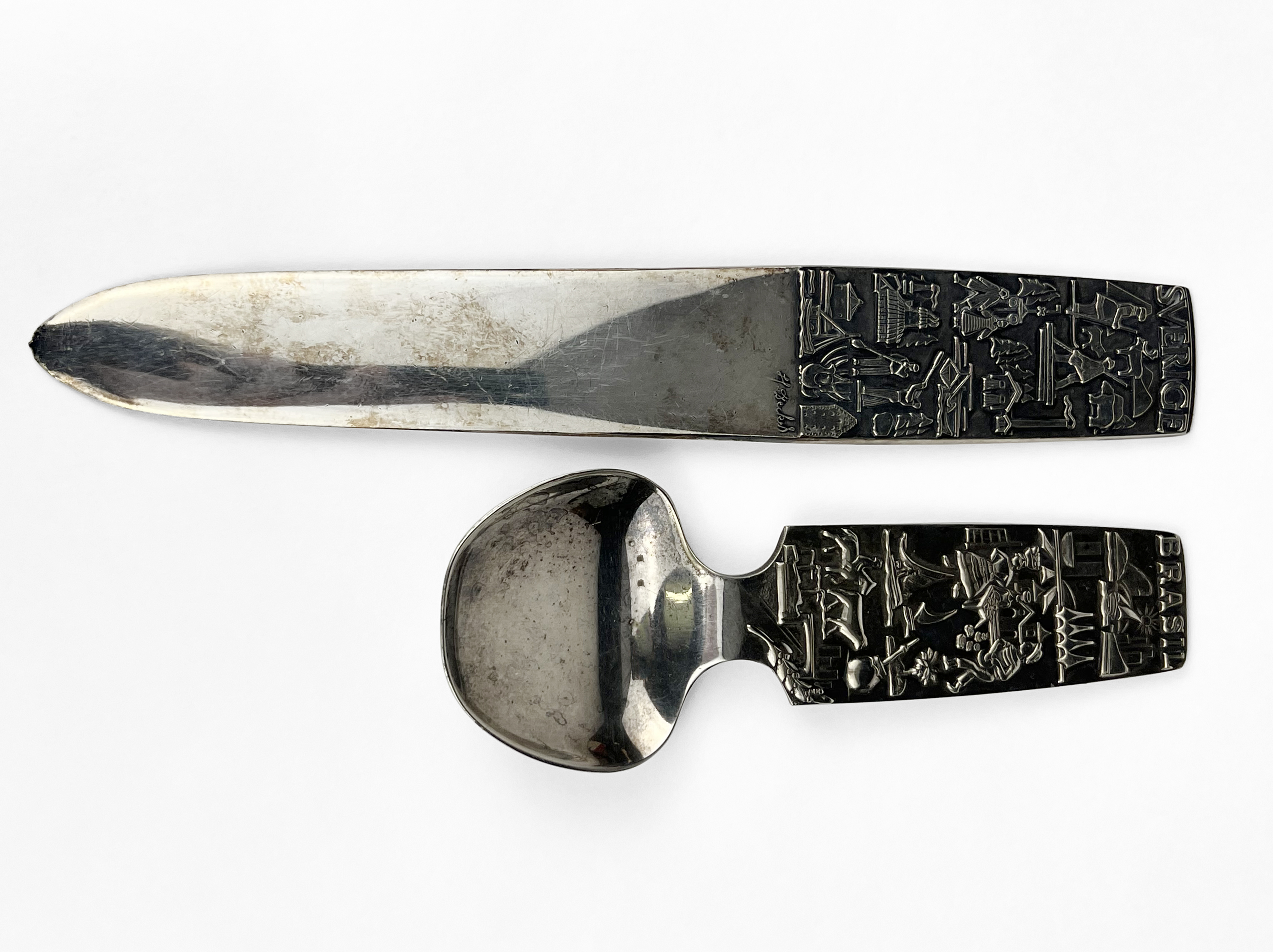 Imitations et originaux, bronze, métal argenté, L 31 et 35 cm