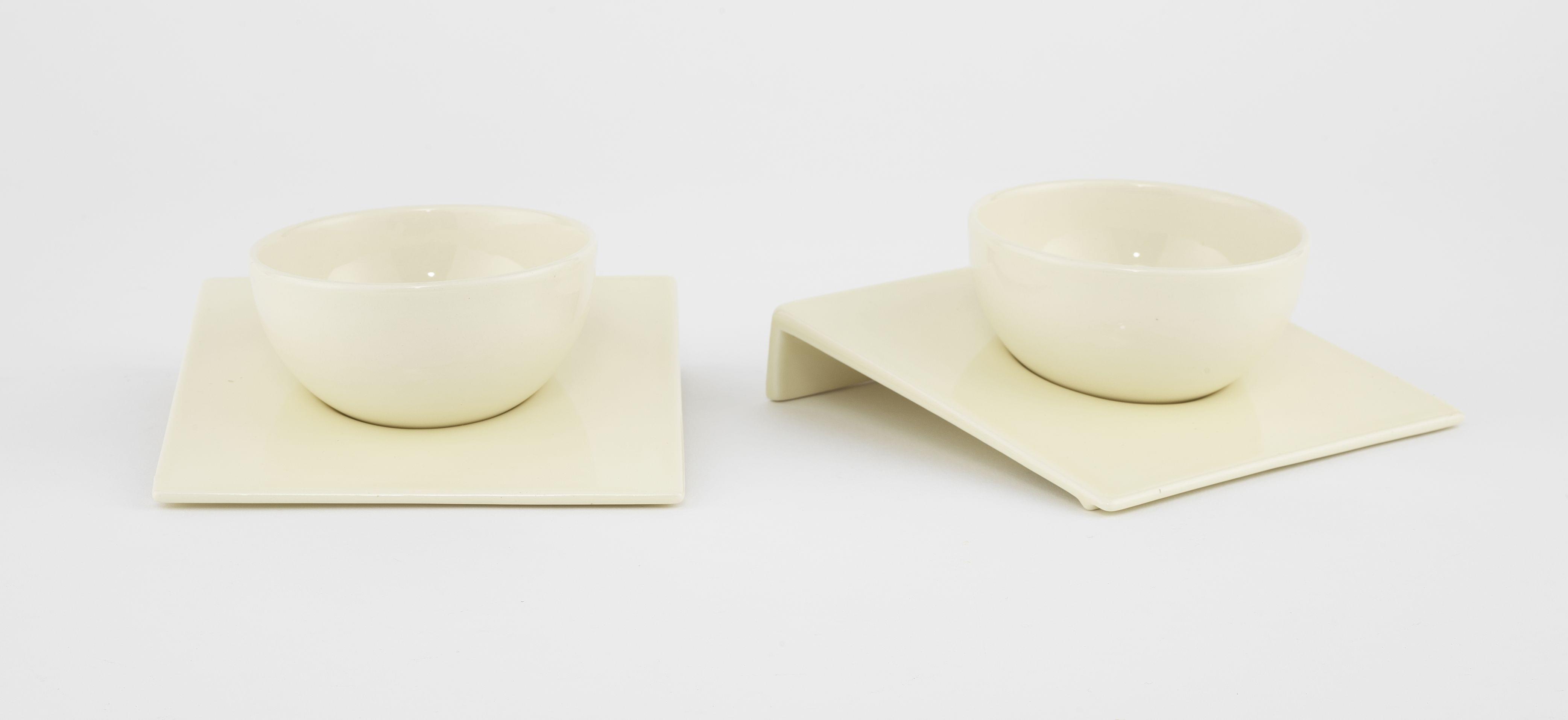 Tête-à-tête de tasses bol sur coupelle carrée oblique, céramique...