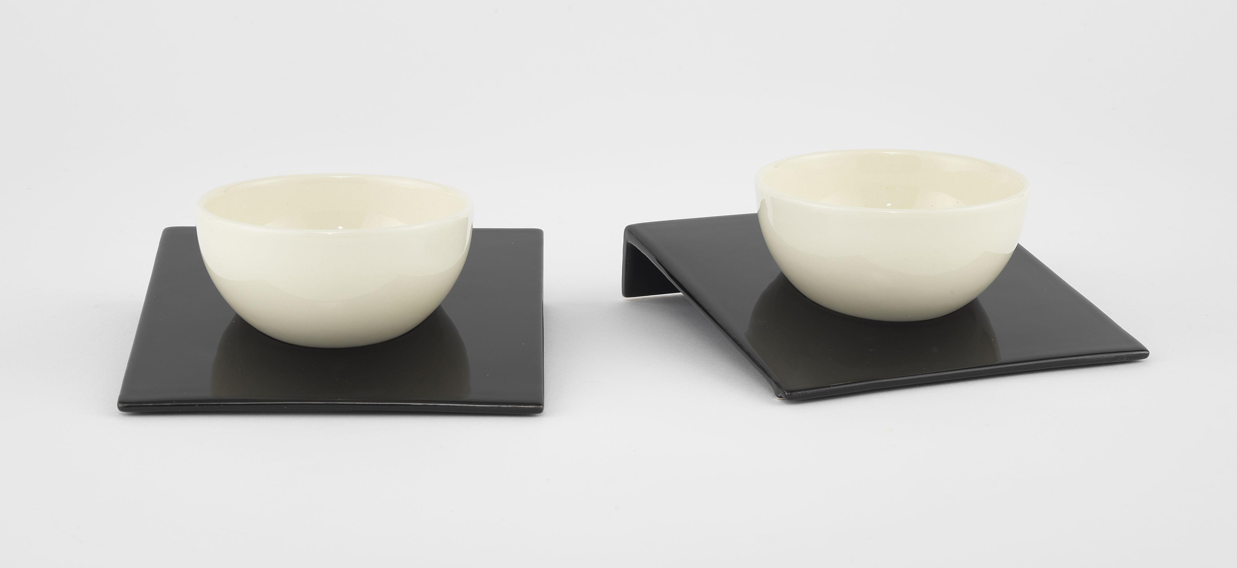 Tête-à-tête de tasses bol sur coupelle carrée oblique, céramique...