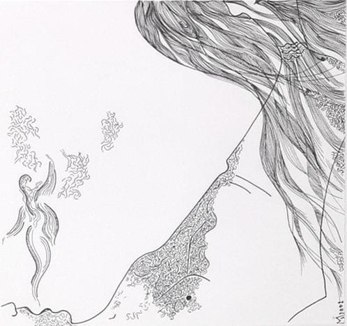 Orgasme M, plume sur papier, monogrammée MS, 2002, 13,5x13,5 cm