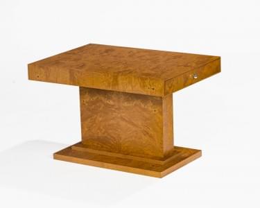 Table basse, deux tiroirs, piètement à degrés, ronce, 52x80x55 c...