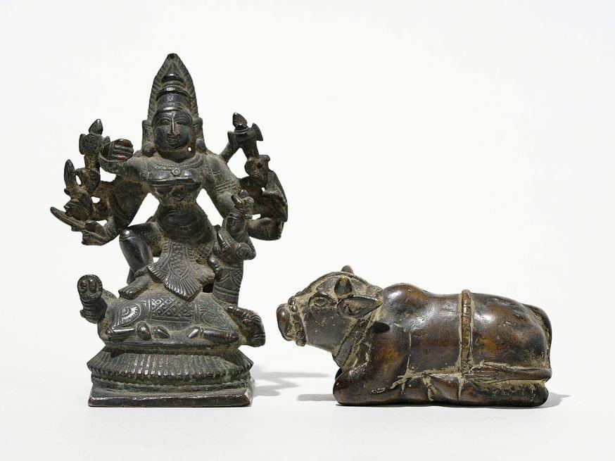 3518. Shiva à huit bras sur le taureau Nandi et taureau Nandi, Inde, XIXe s