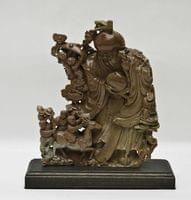3274. Shou Xing, groupe en pierre de larre, tons rouge