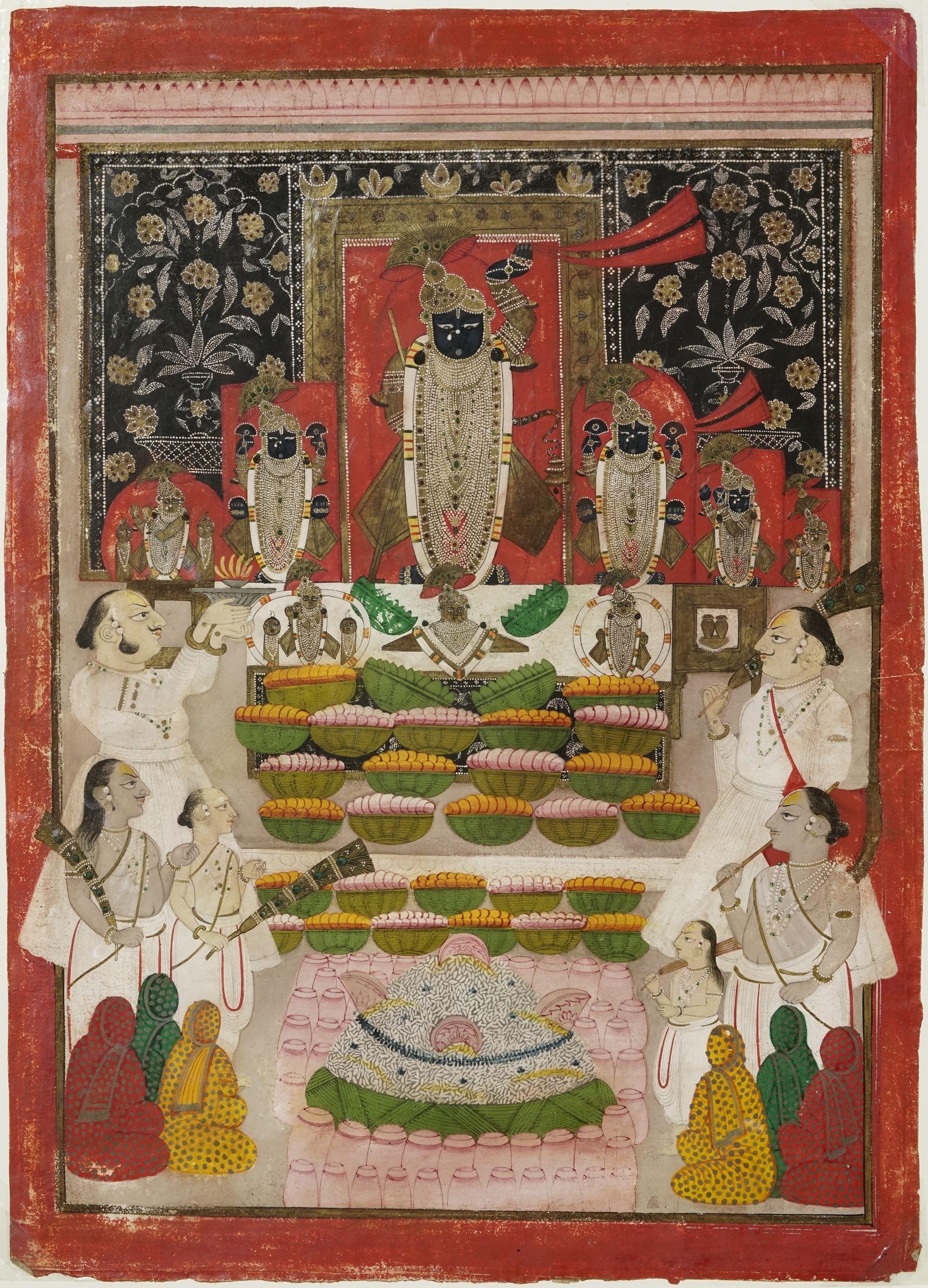 1024. Shrinathji et personnages de cour, Inde, Nathdwara, fin XIXe début XXe s